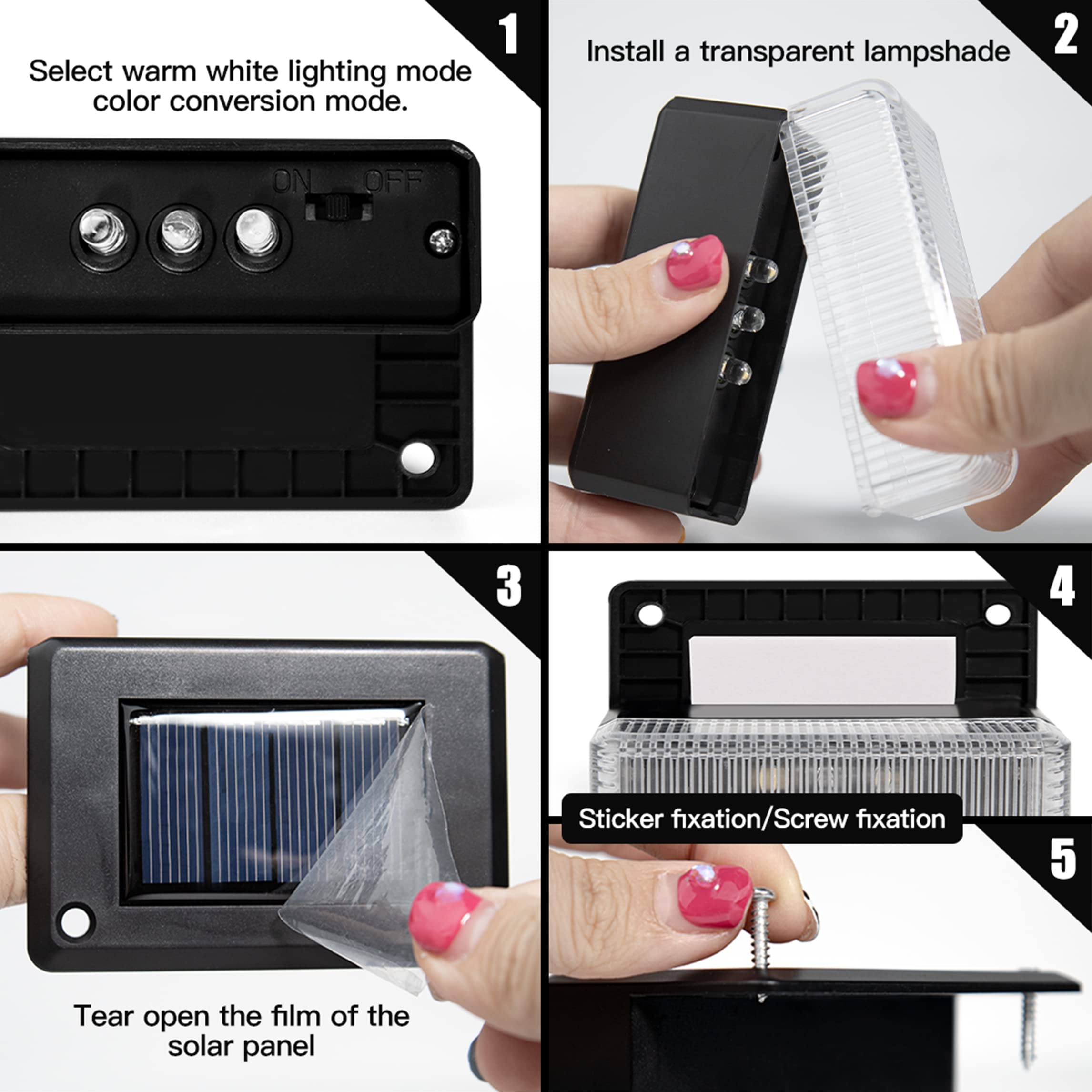 - ☀Einfach zu bedienen und vielseitig: Das Solarlicht wird tagsüber automatisch aufgeladen. Aufgrund des eingebauten lichtempfindlichen Sensors schaltet sich das Nachtlicht automatisch ein. Es eignet sich sehr gut für Ihre Einfahrt, Gehweg, Landschaft, Garten, Terrasse, Flur, Weg, Rasen usw . Das Produkt hat zwei Installationsmethoden: vertikal oder flach. Es sind keine Kabel erforderlich und einfach zu installieren. Es kann mit Schrauben oder Klebeband an jeder Kante installiert werden.