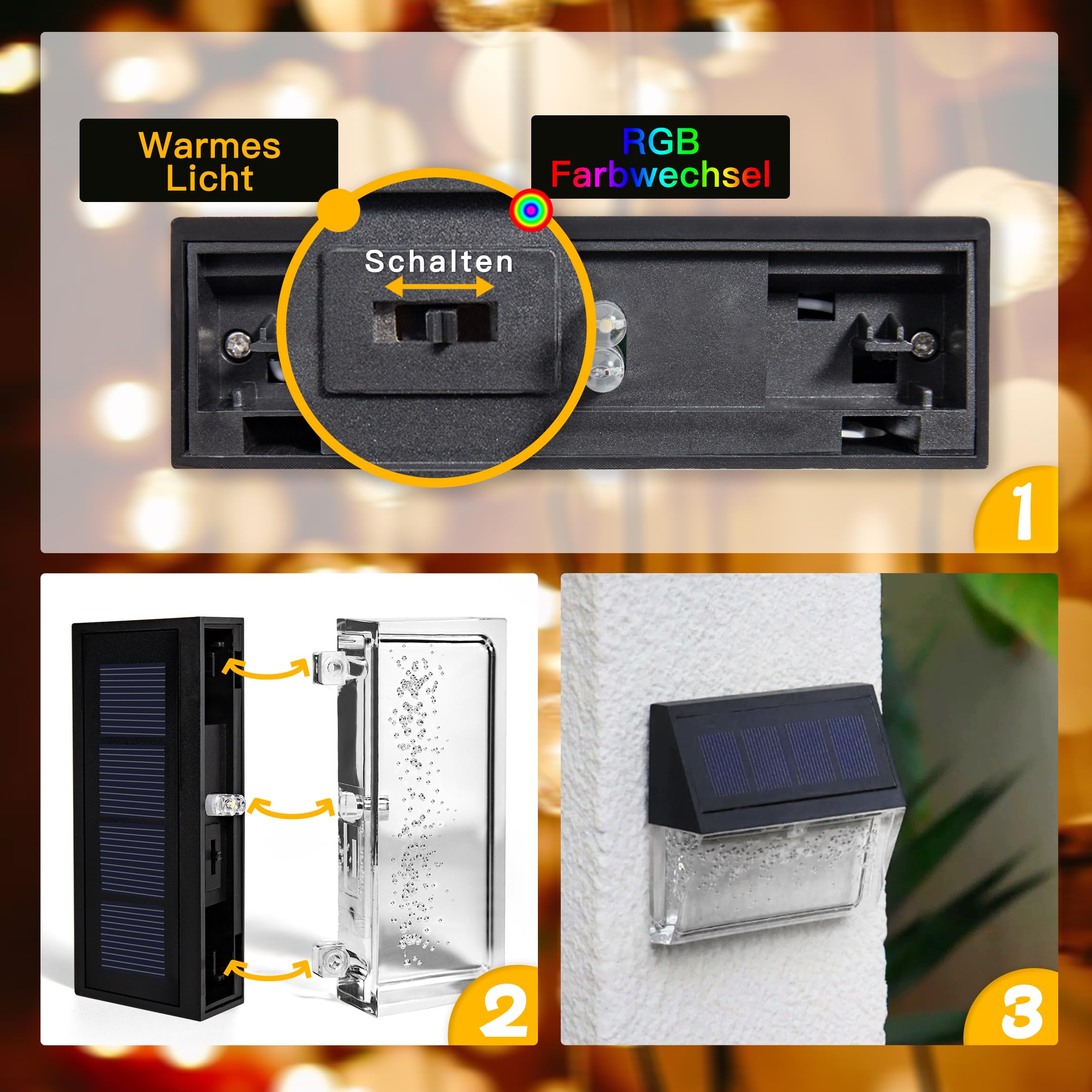 YOFIG Solarlampen für Aussen, Wasserdichte Solarleuchten Garten Deko, Gartendeko 4 Stück Led Solar Gartenleuchten für Terrasse und Stufen, Solarleuchte mit 2 Modi-Warmweiss/Farbwechselnde