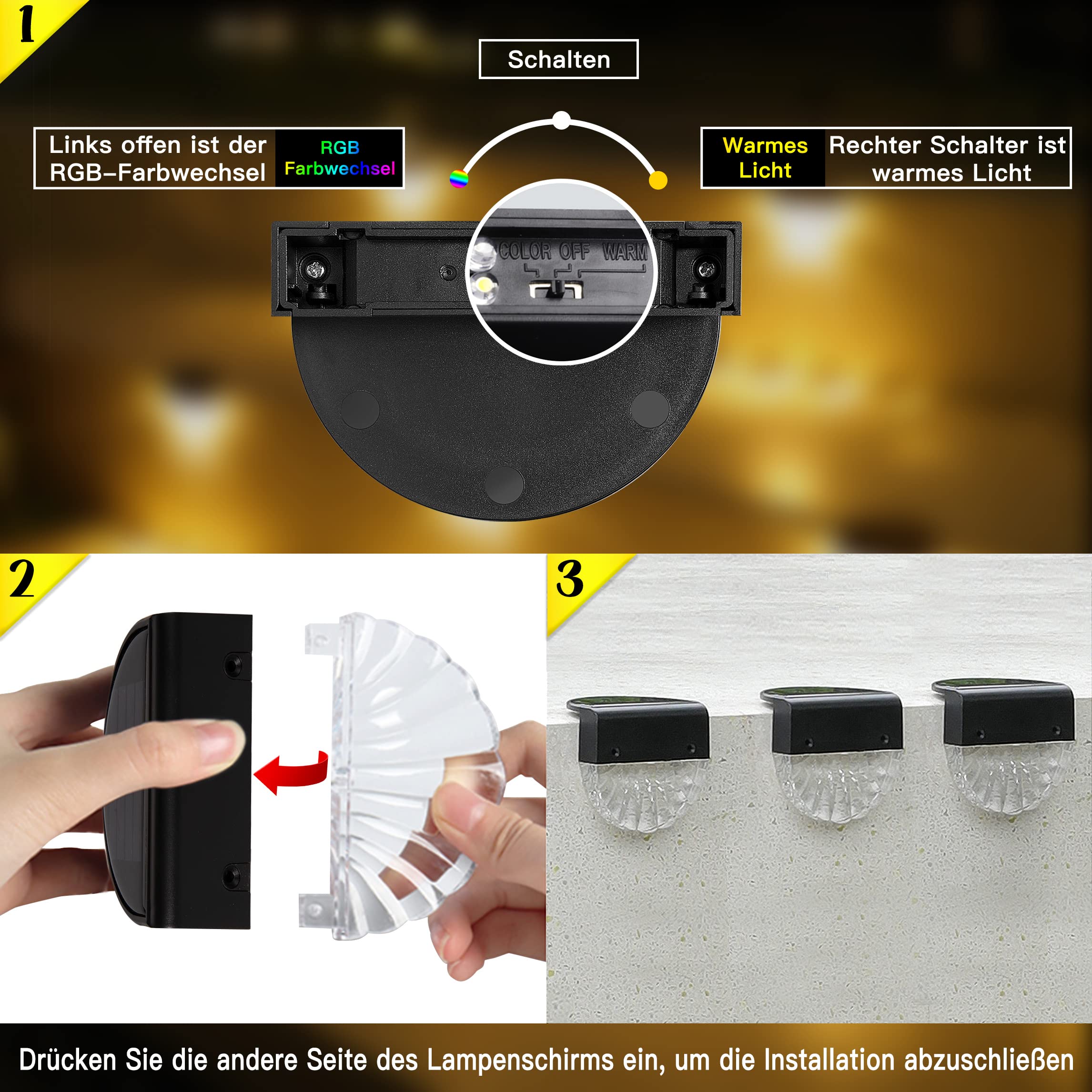 YOFIG Solarlampen für Aussen Garten, Wasserdichte Solarleuchten Garten Dekoration, 6 Stück Led Solar Gartenleuchten für Terrasse und Stufen, Solarleuchte mit 2 Modi-Warmweiss/Farbwechselnde