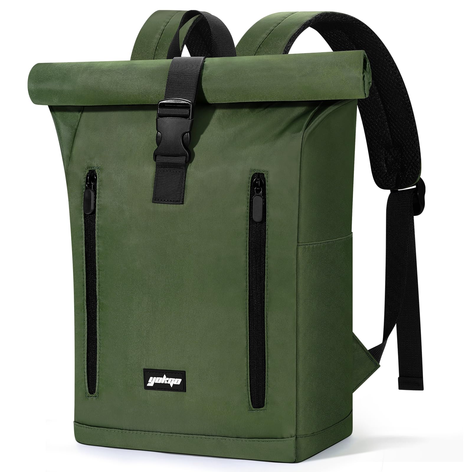 YOKGO Rucksack Damen & Herren, Rolltop Rucksack Wasserfest LaptopRucksack Schulrucksack mit 15,6" Laptopfach, Freizeitrucksack Backpack Daypack für Uni Schule Business Arbeit City Freizeit Reise