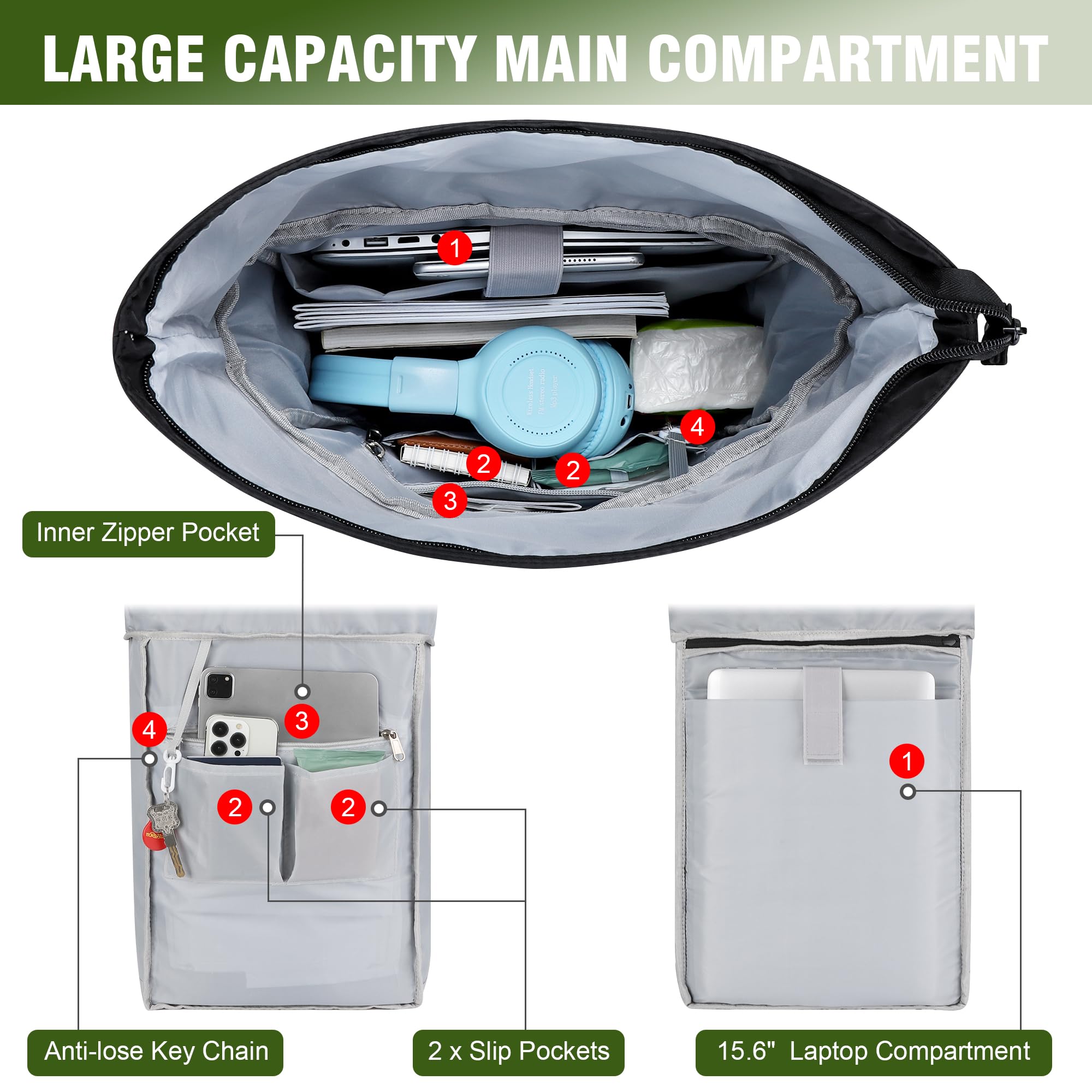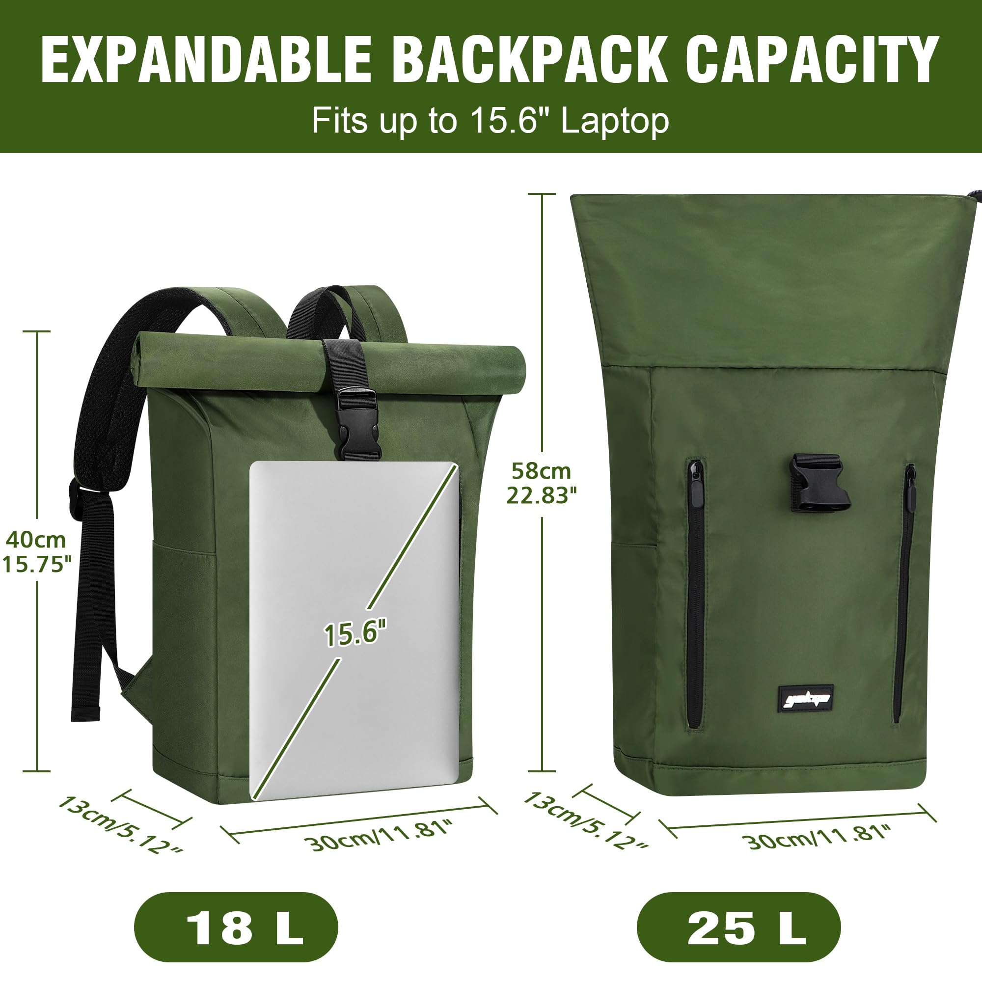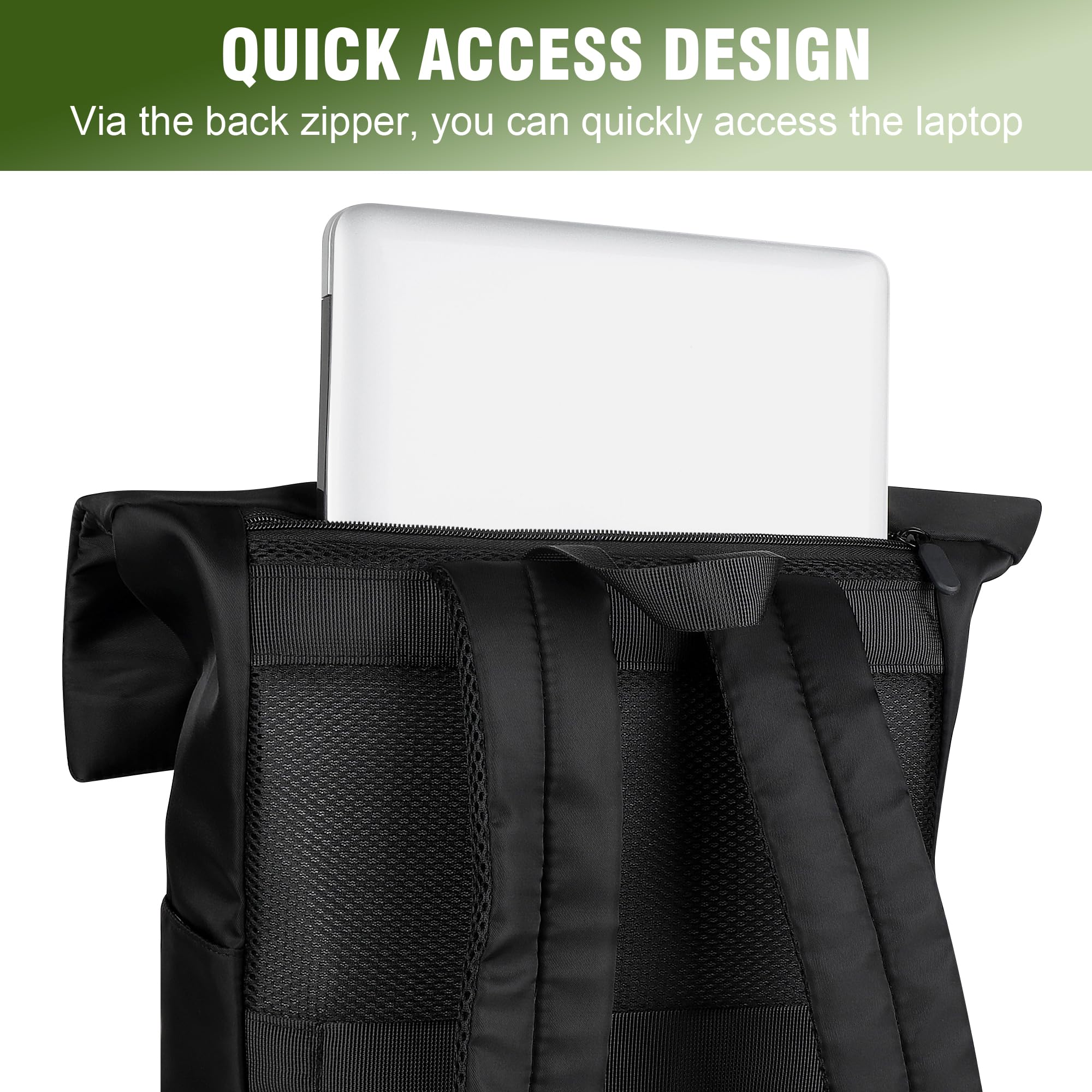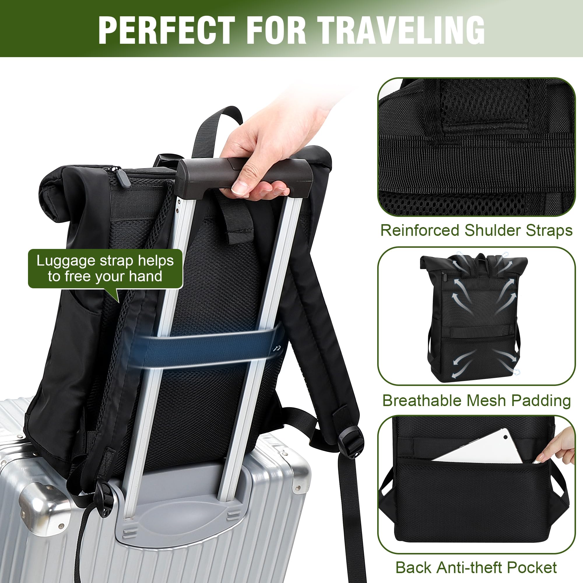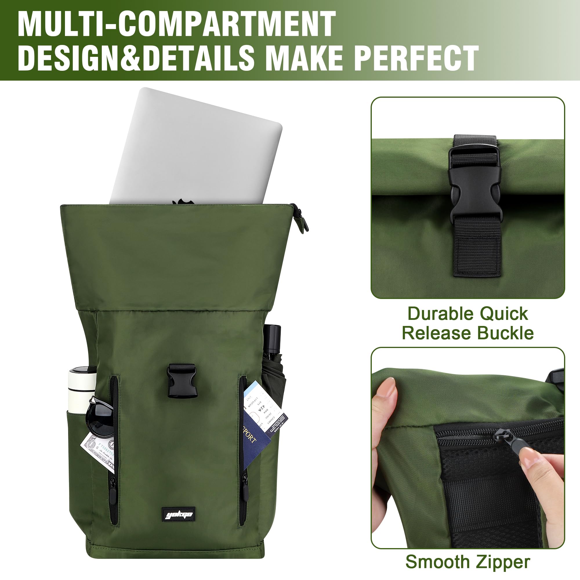 YOKGO Rolltop Rucksack Damen & Herren - Mit Laptopfach für 15.6 Zoll Laptop, Grosser Reiserucksack Backpack Daypack für Uni Schule Business Arbeit City Freizeit Reise