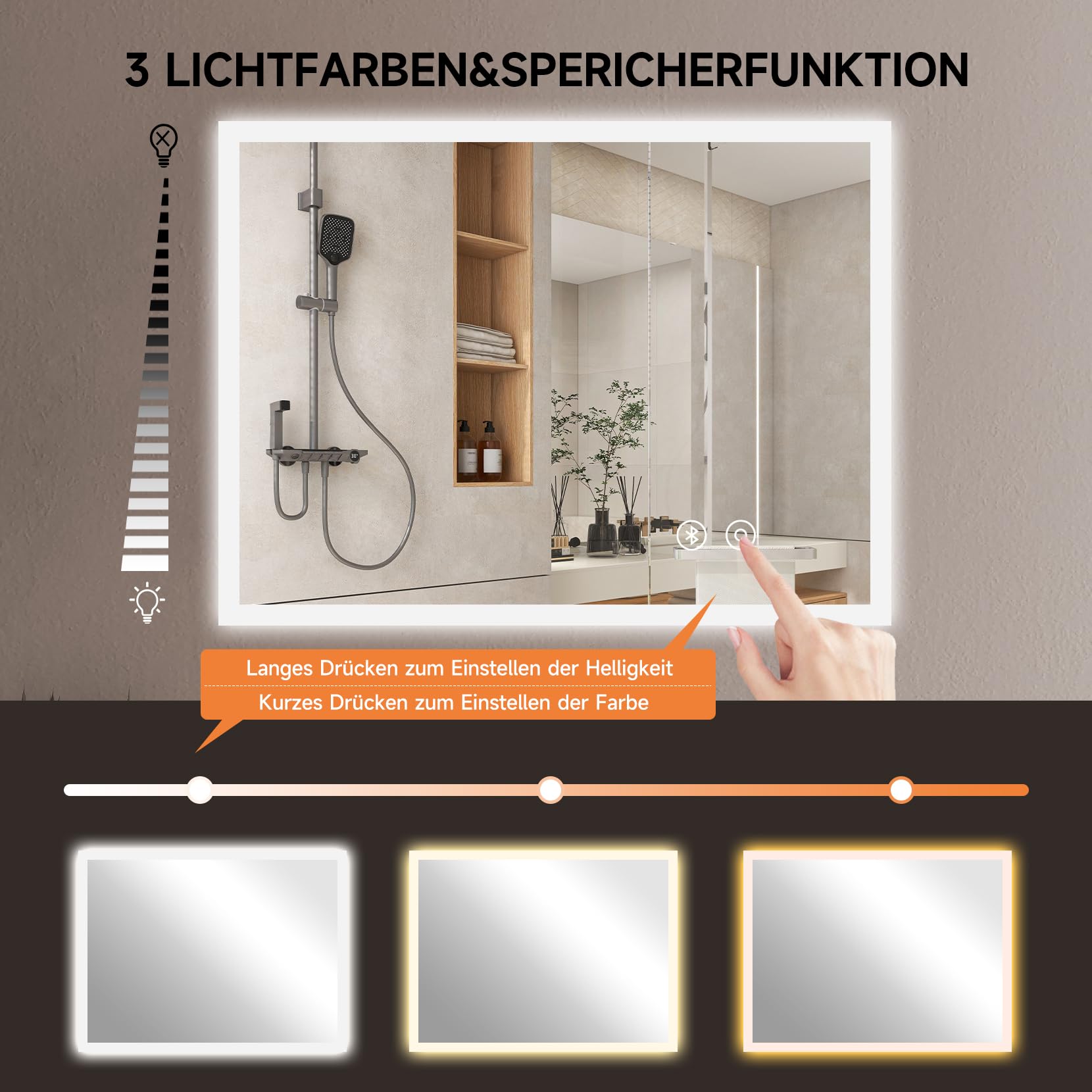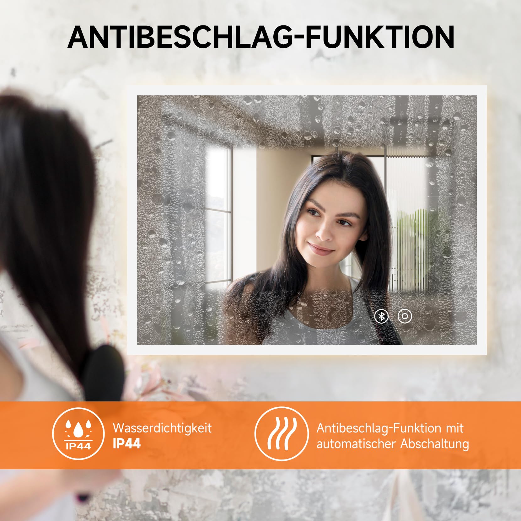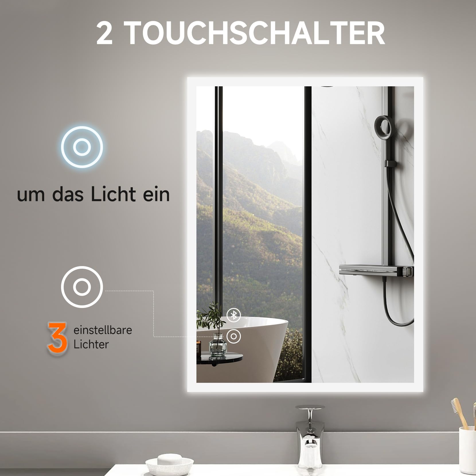 YOLEO Badspiegel mit Beleuchtung, LED Spiegel mit Bluetooth-Lautsprecher, Wandspiegel mit Steckdose, Badzimmerspiegel LED Beschlagfrei mit Touchschalter, 3 einstellbare Lichtfarbe, 80x60cm