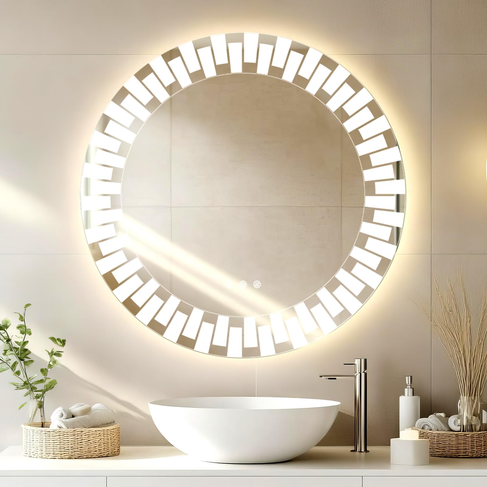 Zeitgenössische Kunst in ihrer elegantesten Form: YOLEO runde Badezimmerspiegel überzeugt durch seine klaren, minimalistischen Linien, die ihm eine moderne und zugleich stilvolle Ästhetik verleihen. Er fungiert nicht nur als funktionales Accessoire, sondern auch als anspruchsvolle Raumdekoration – ob im Bad, im Flur oder in anderen Wohnbereichen. Eine perfekte Symbiose aus Praktikabilität und ästhetischem Anspruch.