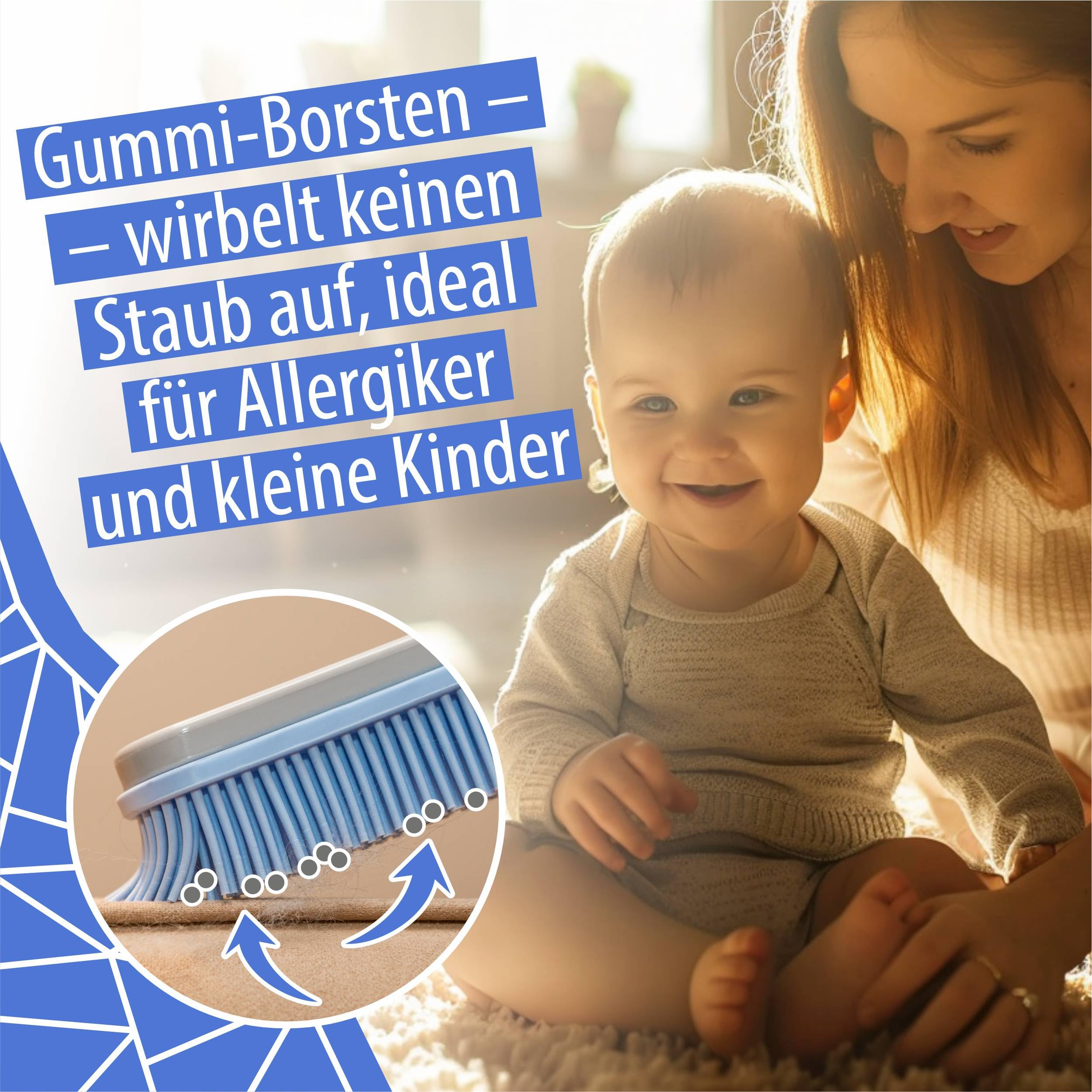 • Sammelt perfekt alle Arten von Haaren einschliesslich Tierhaaren aus dem Teppich oder den Polstern, unverzichtbares Produkt für Allergiker und Räume, in denen sich Kinder aufhalten.