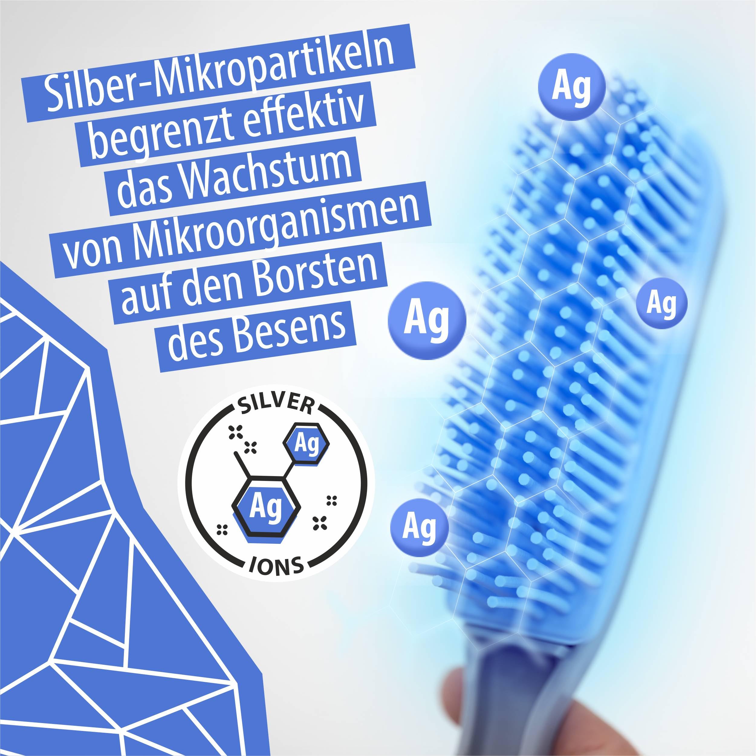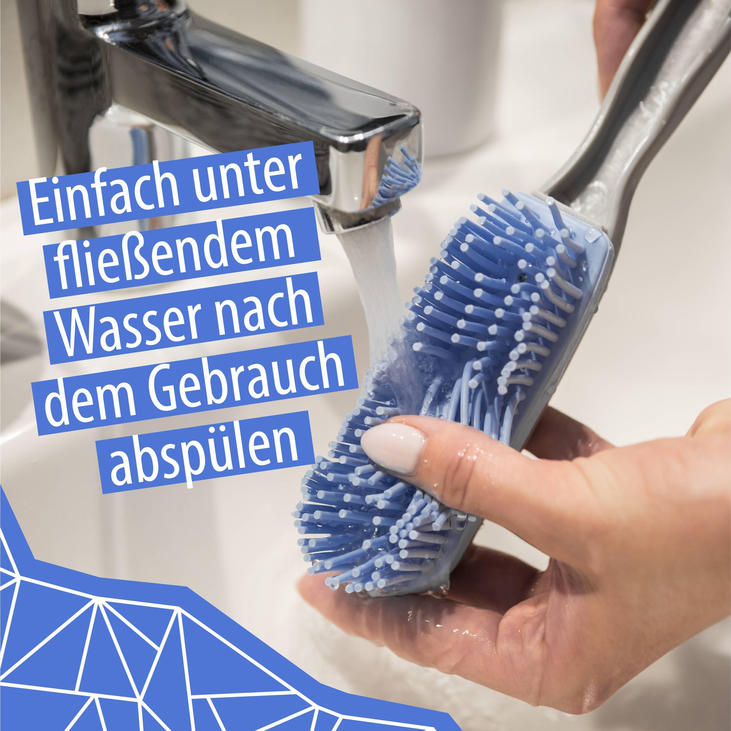 • Am Rand der Kehrschaufel befinden sich spezielle Zähne, mit denen Sie die Kehrschaufel laufend von Schmutz befreien können, indem Sie sie einfach unter fliessendem Wasser abspülen.