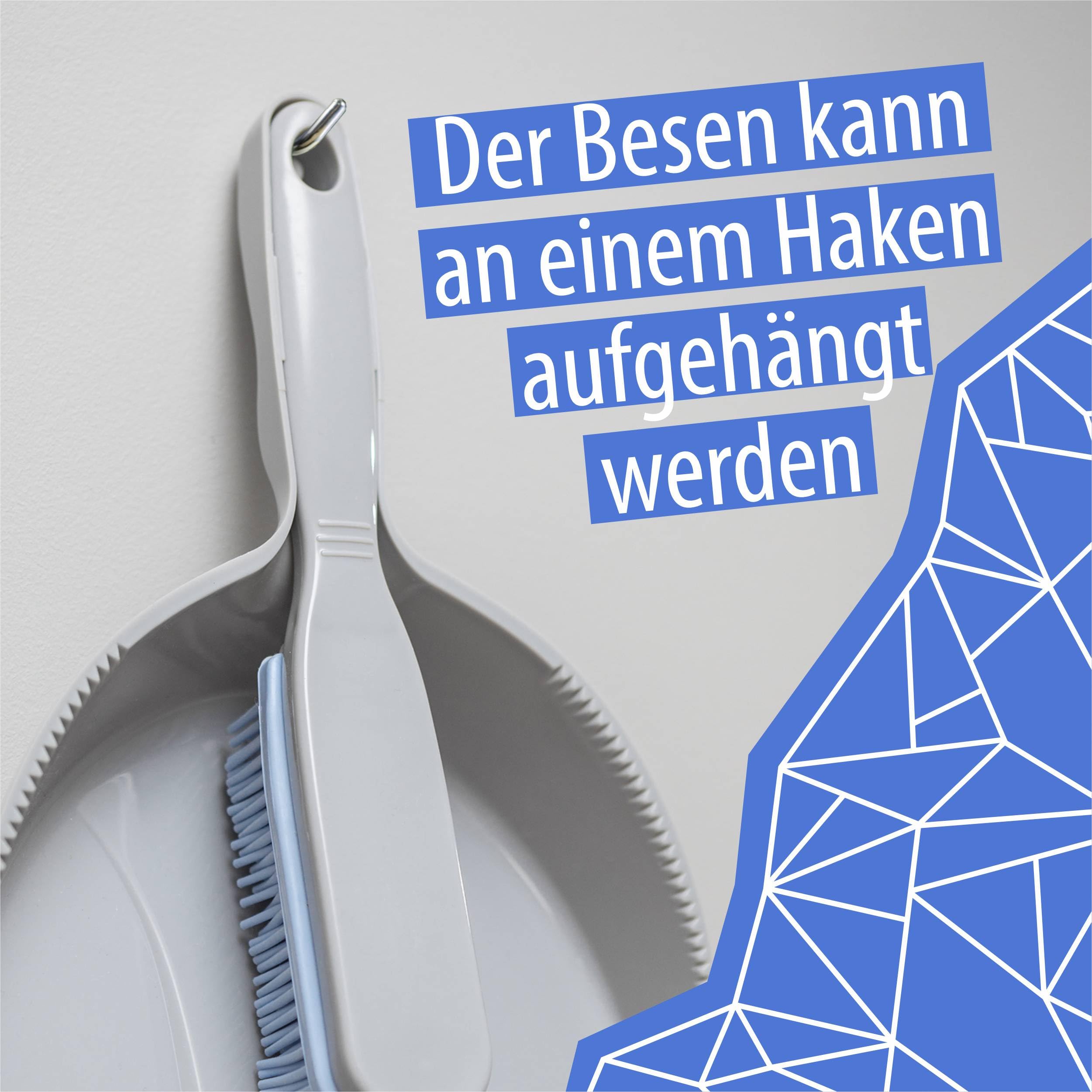 • An der Kehrmaschine befindet sich ein weicher Gummipuffer zum Schutz von Wänden und Möbeln, das Set hat ein praktisches Loch zum Aufhängen.