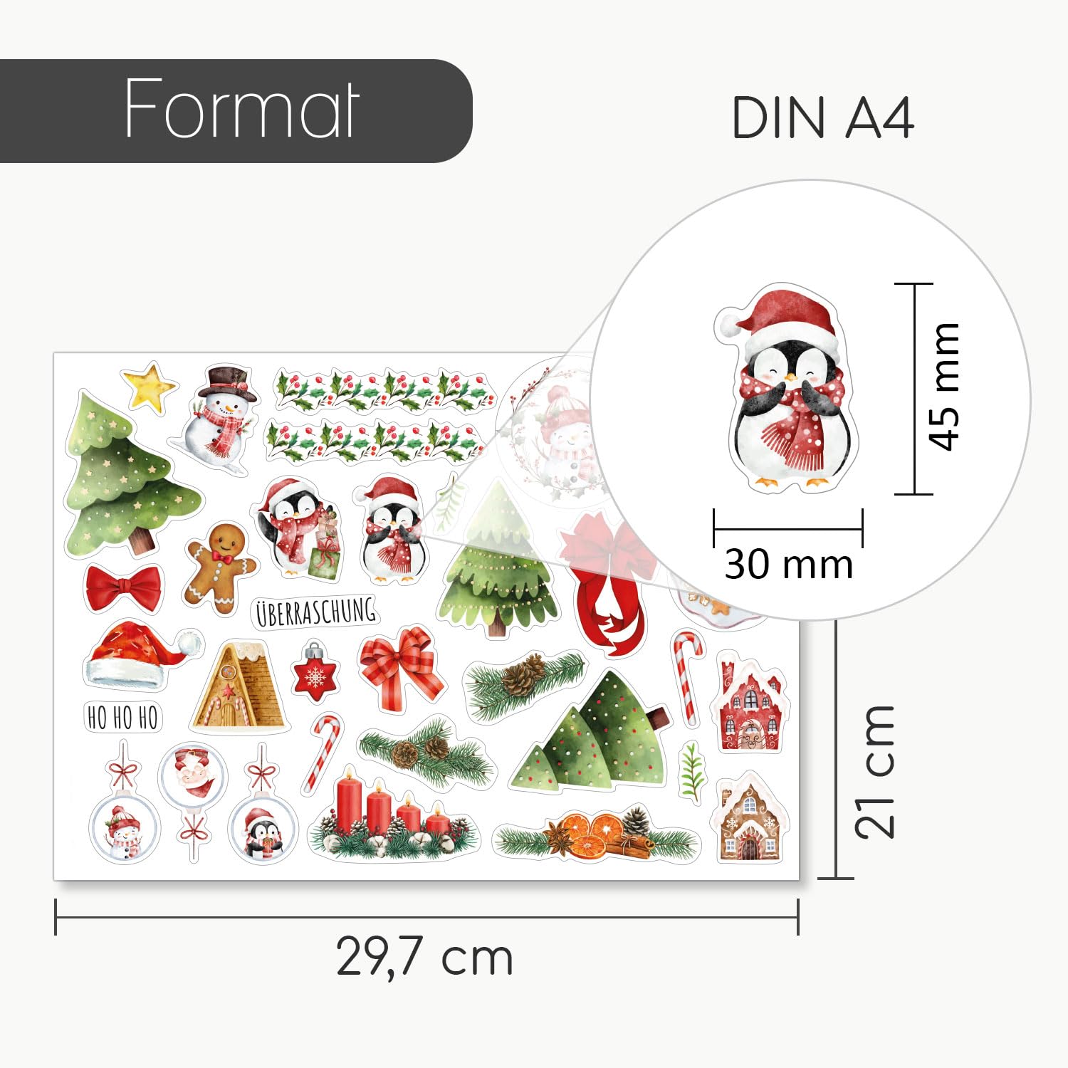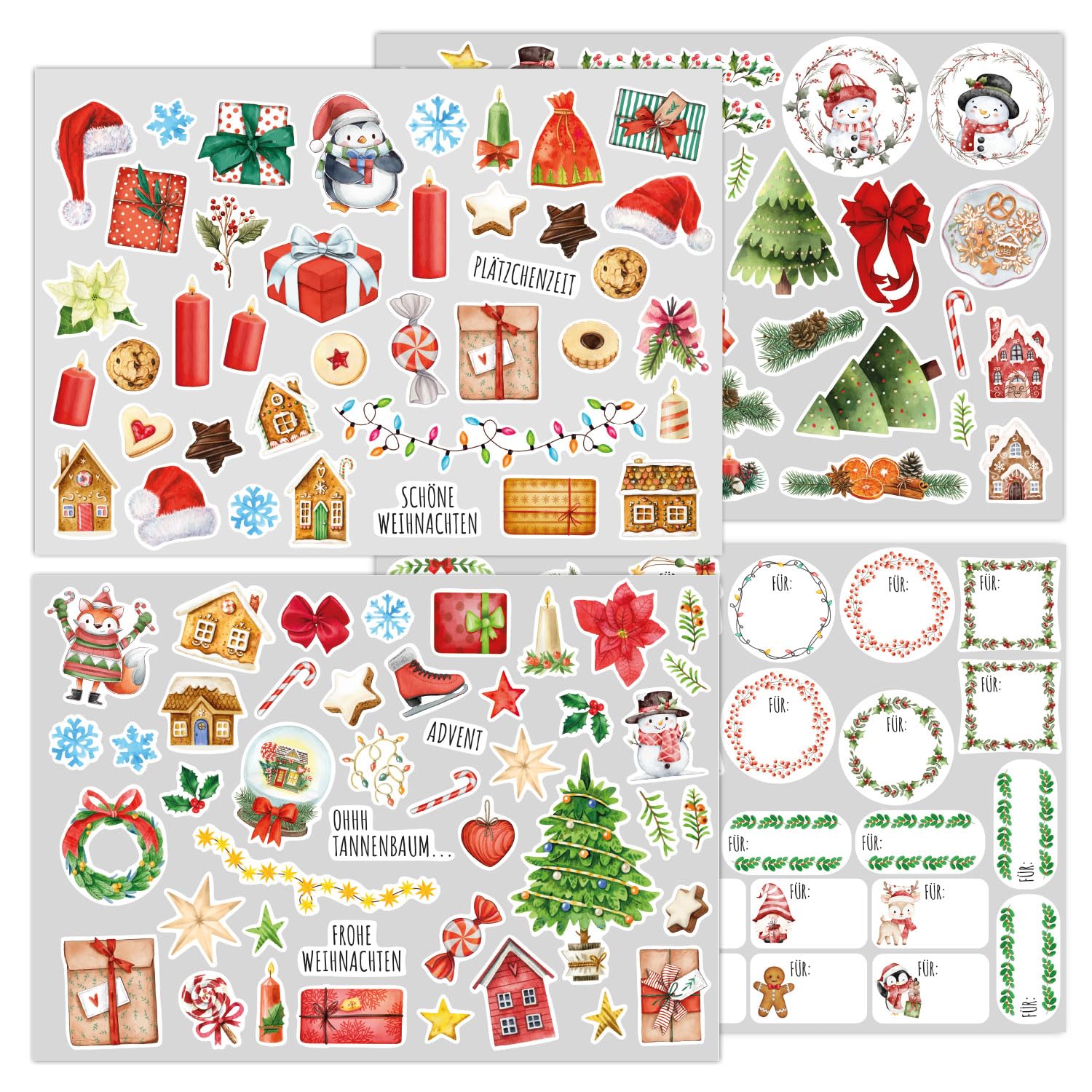 younikat Aufkleber Set Weihnachten Advent 145 Stück - Sticker Scrapbook Fotoalbum Kalender Deutsch I you0171