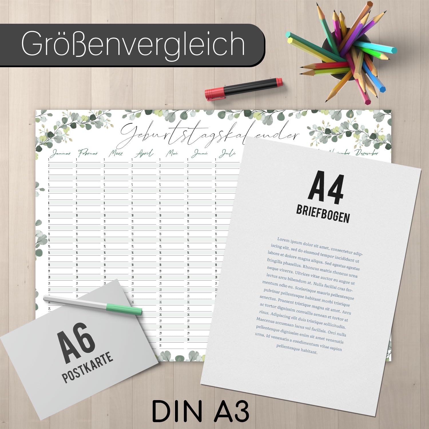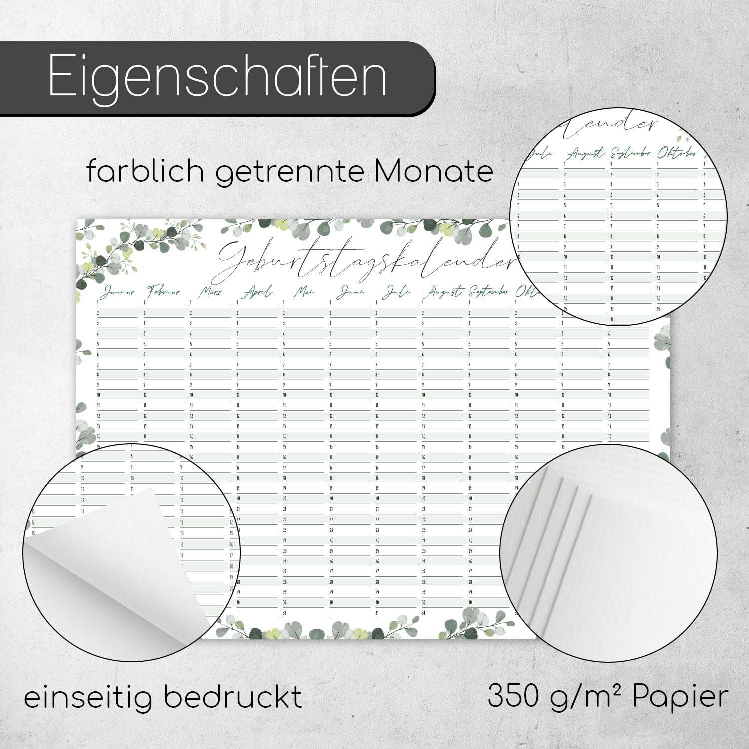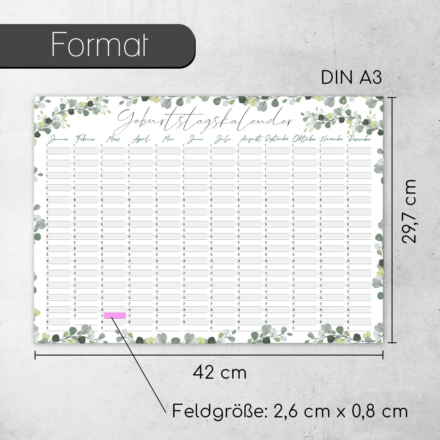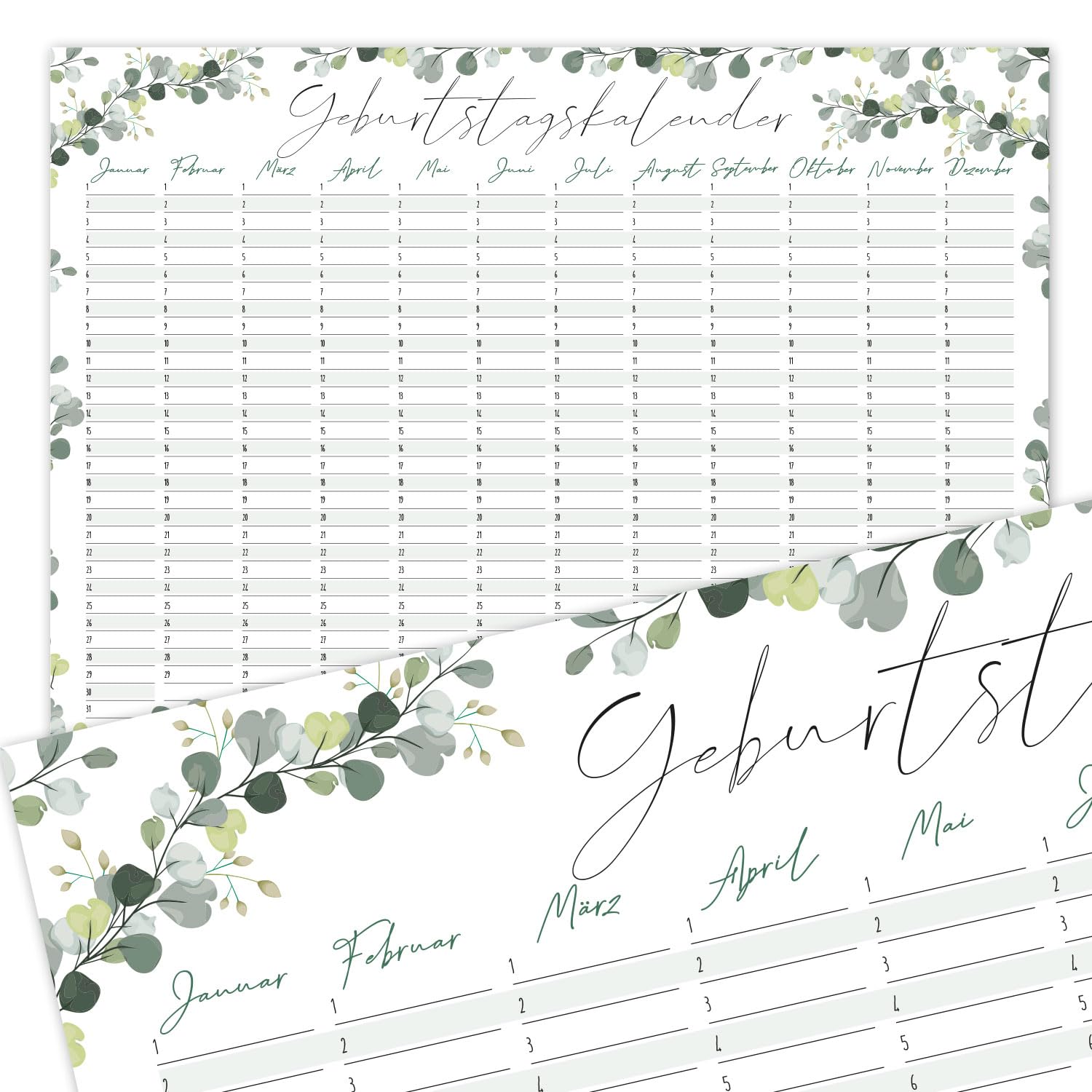 younikat Geburtstagskalender jahresunabhängig A3 - Eukalyptus Geburtstags Kalender - Dauerkalender ohne Jahr - Wandkalender Geburtstag immerwährend für die ganze Familie I dv778