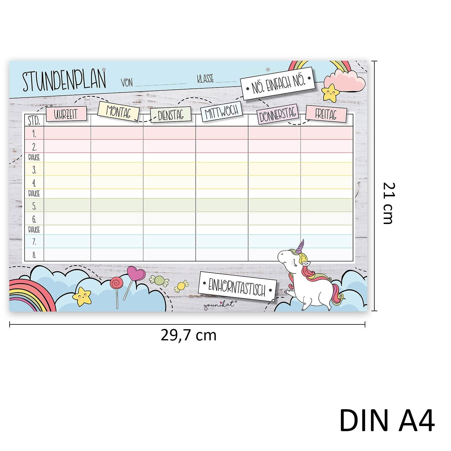 younikat Stundenplan abwischbar zum aufhängen I Einhorn I inkl. Stift wiederbeschreibbar I Grundschule Jungen Mädchen I dv983