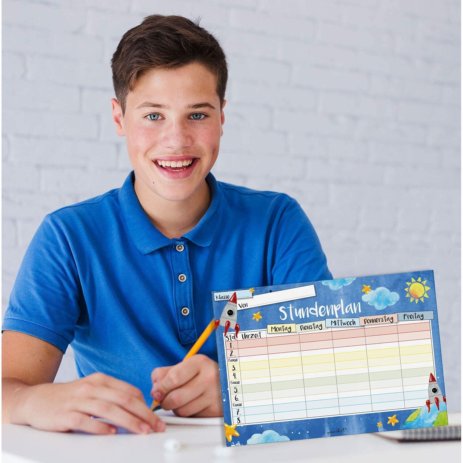 younikat Stundenplan abwischbar zum aufhängen I Weltall I inkl. Stift wiederbeschreibbar I Grundschule Jungen Mädchen I dv889