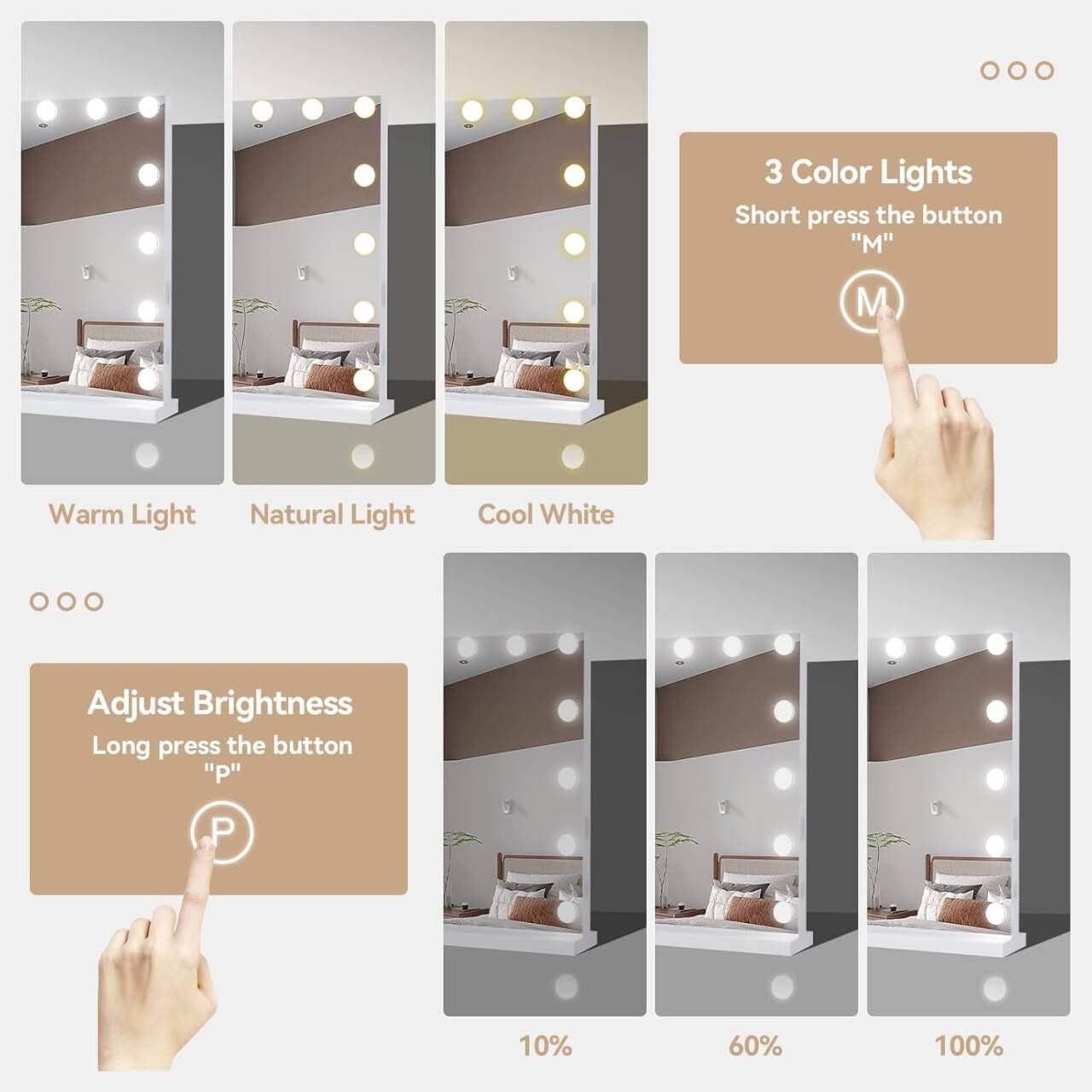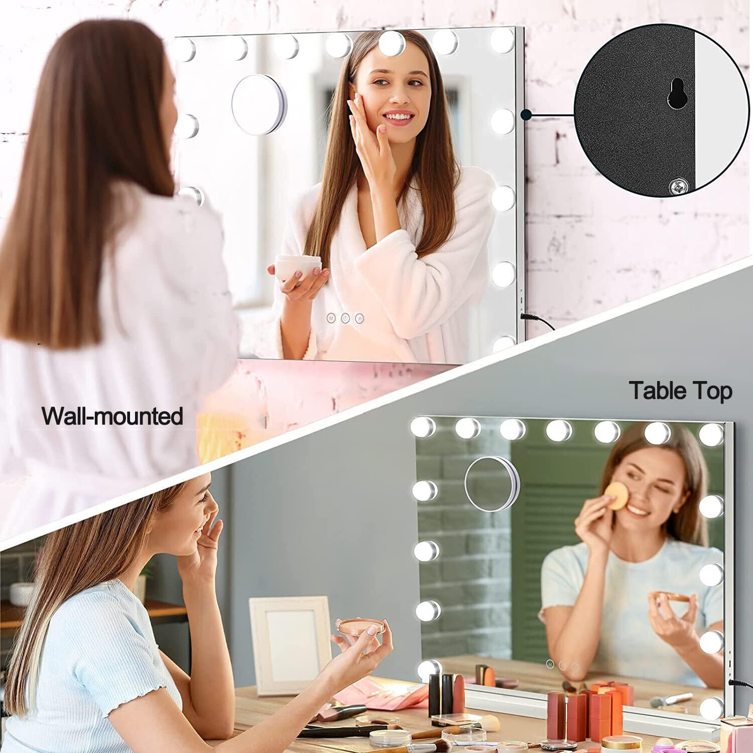 YOURLITE Hollywood Schminkspiegel mit Beleuchtung 50CM, 12 LED Dreifarbige Lichter sind dimmbar Touch Control Runden Hollywood Spiegel mit Beleuchtung für Schlafzimmer, 10X Vergrösserung (58x45)