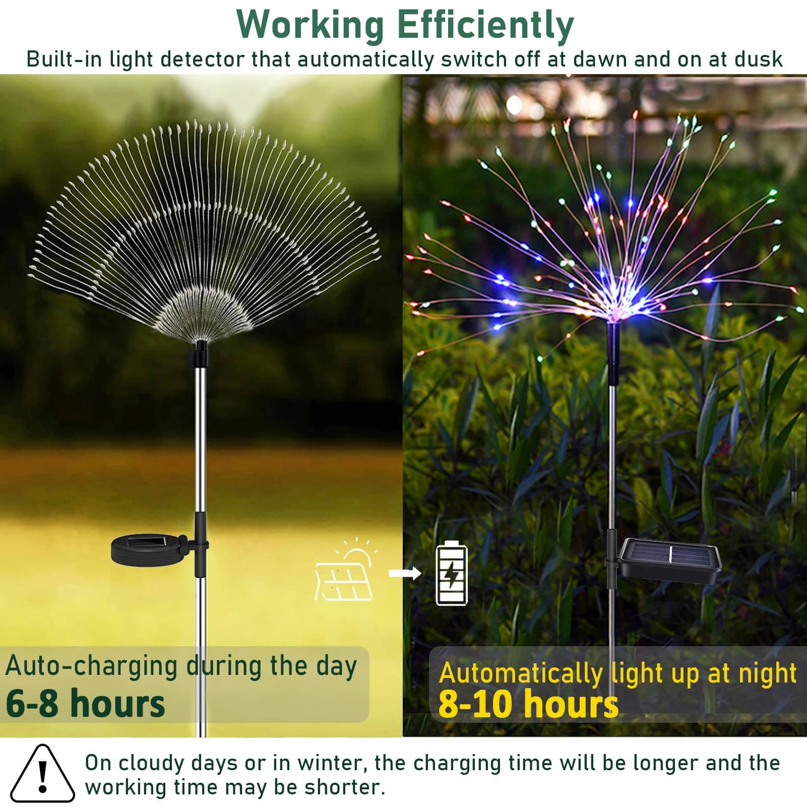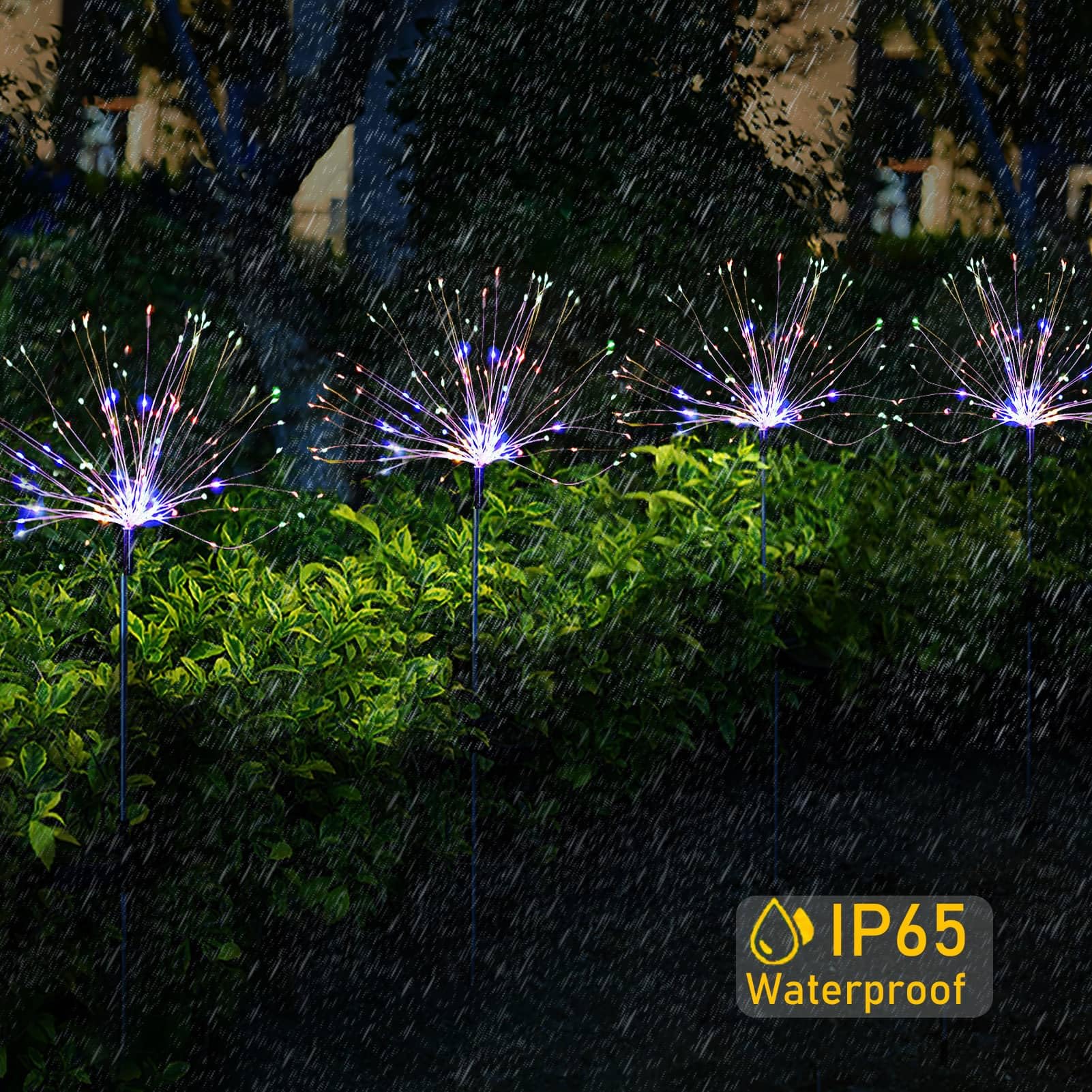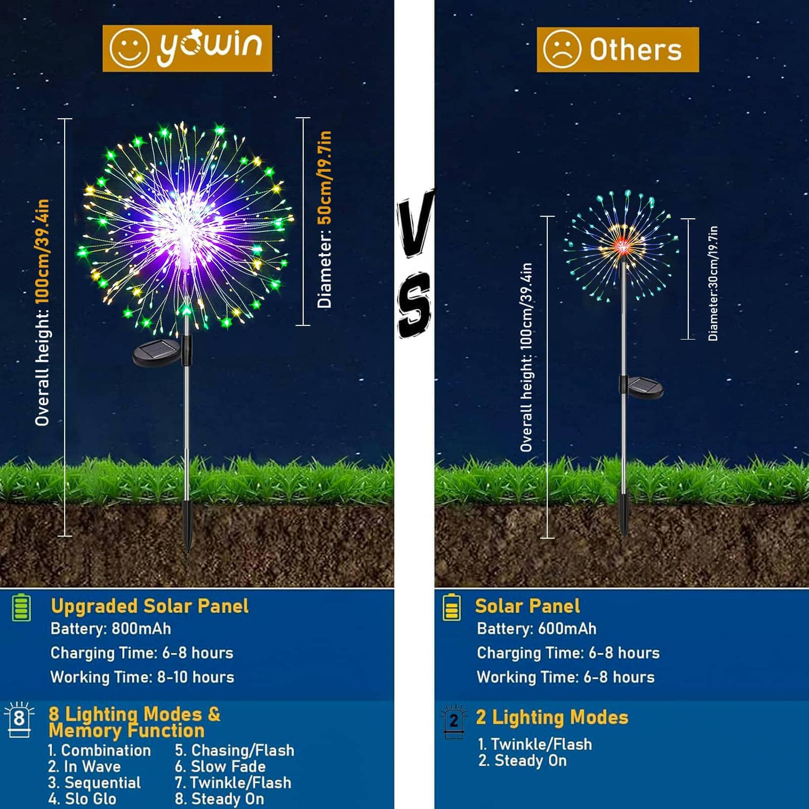 yowin Solarleuchten für Aussen 2 Stück 120 LED Garten Solarlampen, 8 Modi Feuerwerk Gartenleuchten Wetterfest Pusteblume Gartenstecker für Balkon Blumenkästen Terrassen Deko - Mehrfarbig