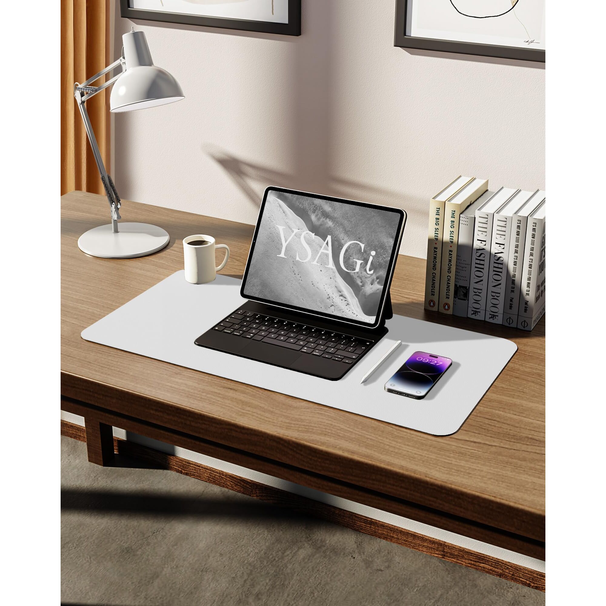 YSAGi Schreibtischunterlage 60x35cm, Premium Leder Mauspad XXL, Rutschfeste Tischunterlage Schreibunterlage, Multifunktionales Office Mousepad Schreibtisch Zubehör für Büro & Homeoffice (Weiss)