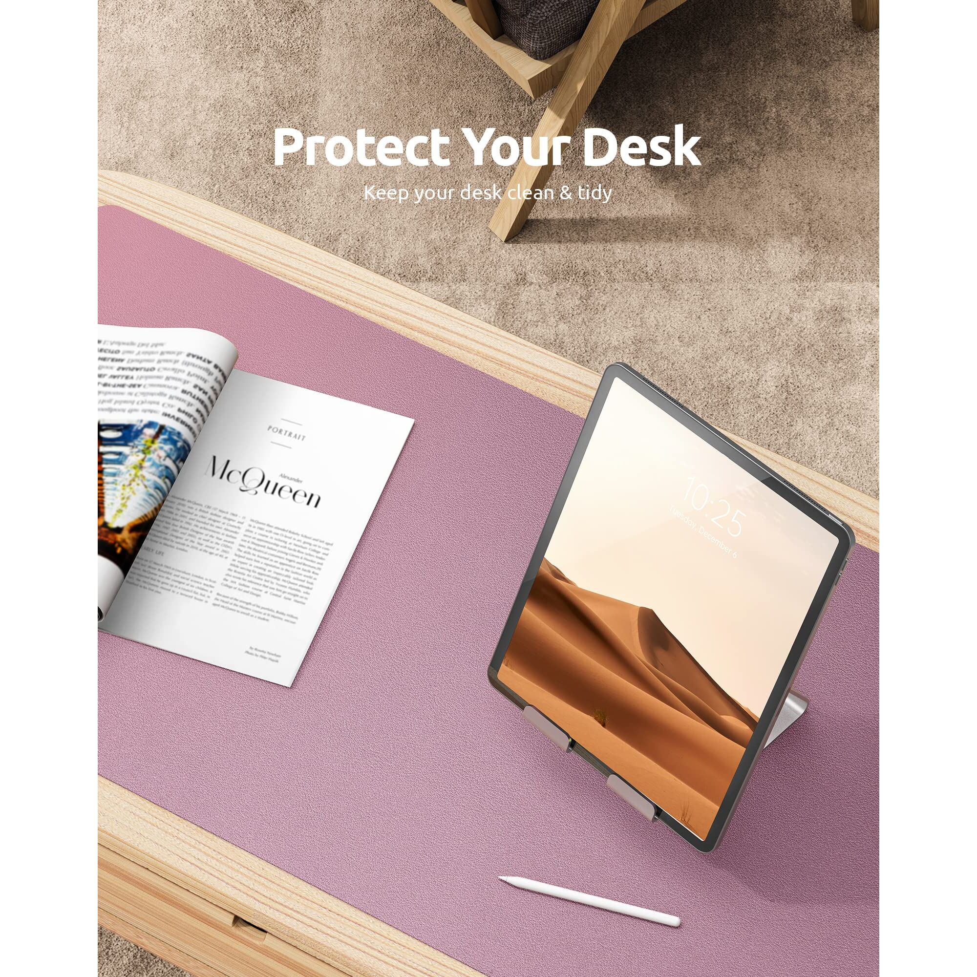 YSAGi Schreibtischunterlage 80x40cm, Premium Leder Mauspad XXL, Rutschfeste Tischunterlage Schreibunterlage, Multifunktionales Office Mousepad Schreibtisch Zubehör für Büro & Homeoffice (Mauve)