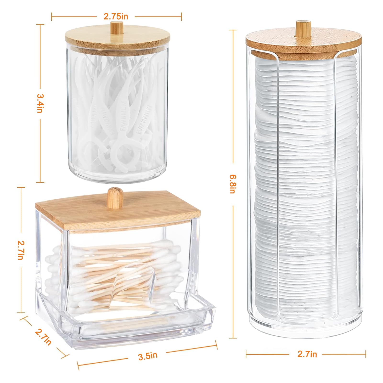 YTUGIL 3 Stück Wattepadspender,wattepad halter,behälter für wattepads,behälter wattepads,Wattestäbchen Halter - Mit Bamboo-Deckel