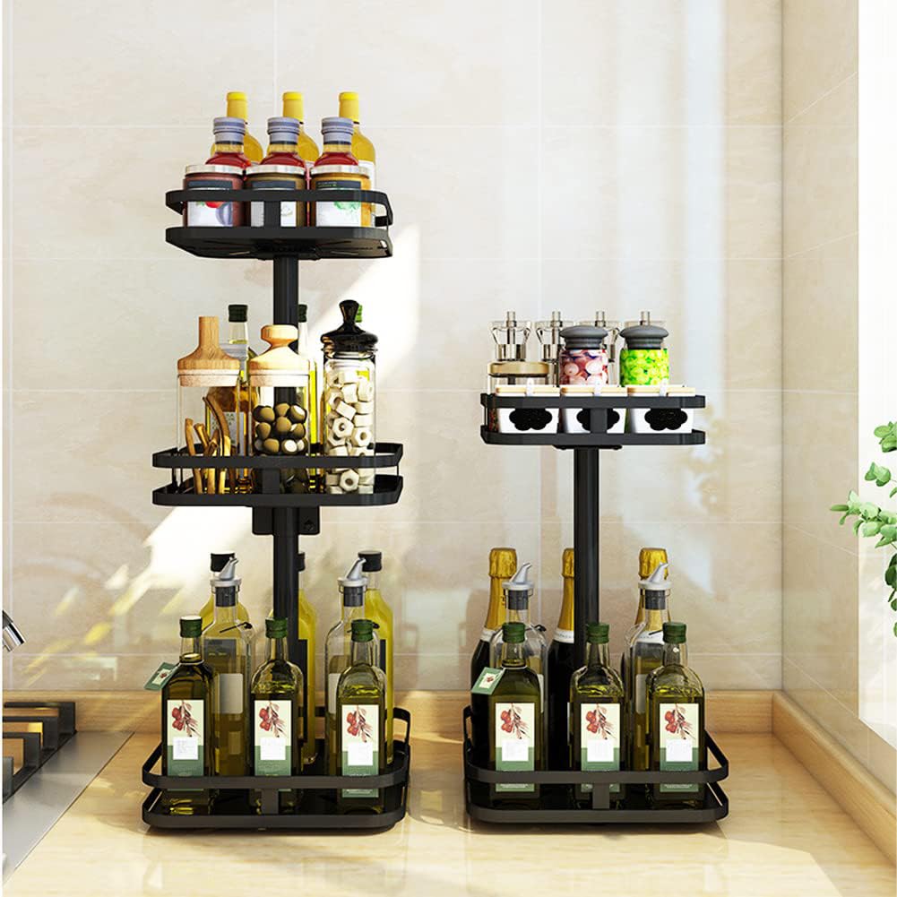 YunNasi Gewürzregal Drehbar 2 Etagen Schwarz Lazy Susan Küchenregal Stehend für Arbeitsplatte Küchenorganizer Eckregal Ohne Bohren