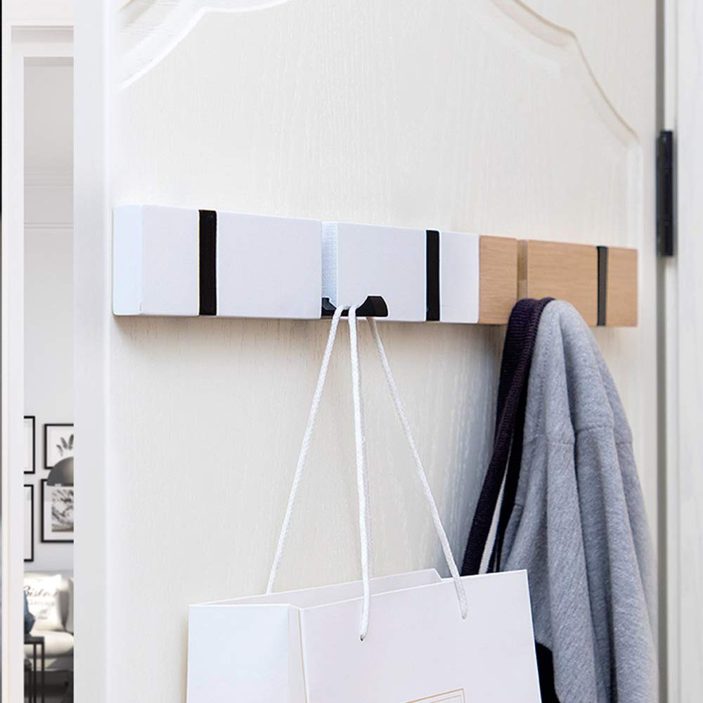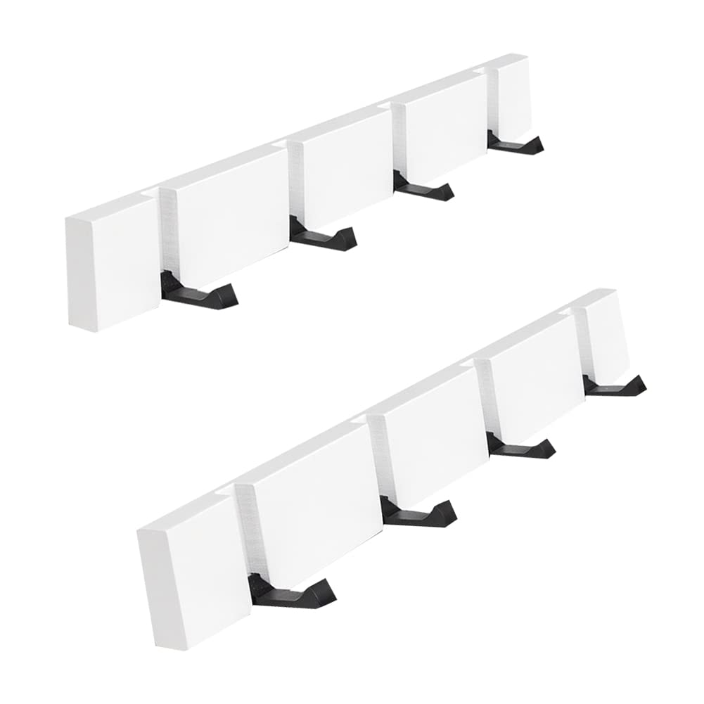 YunNasi Hakenleiste Holz Kleiderhaken Klappbar Garderobenleiste Wand Garderobenhaken mit 5 Faltbar Haken für Jacken Mäntel Schals Hüten Handtaschen(Weiss, 4 Haken-2xStück)
