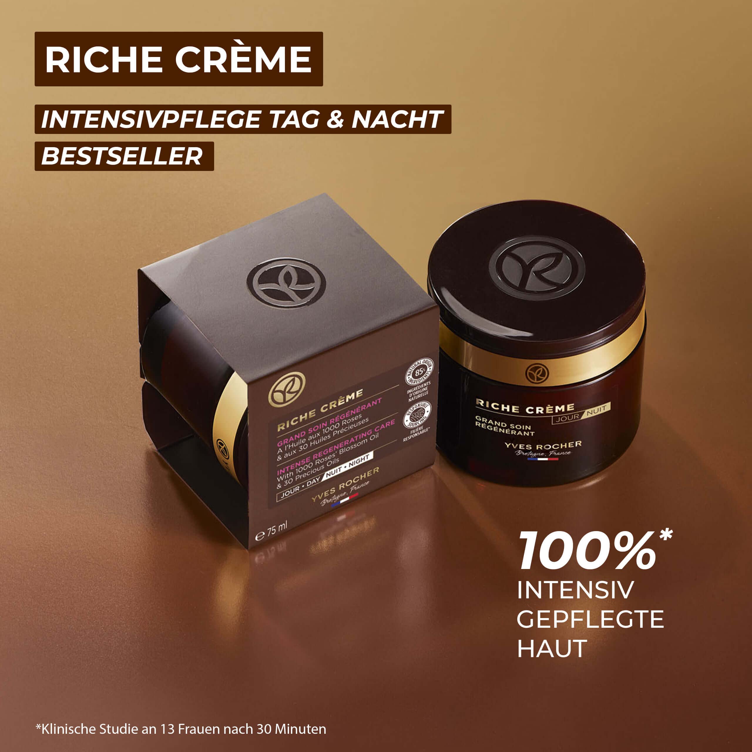 Yves Rocher RICHE CRÉME - Intensivpflege Tag & Nacht - Anti Aging Gesichtscreme - Mit Öl aus 1000 Rosen für intensive Zellregeneration-75ml