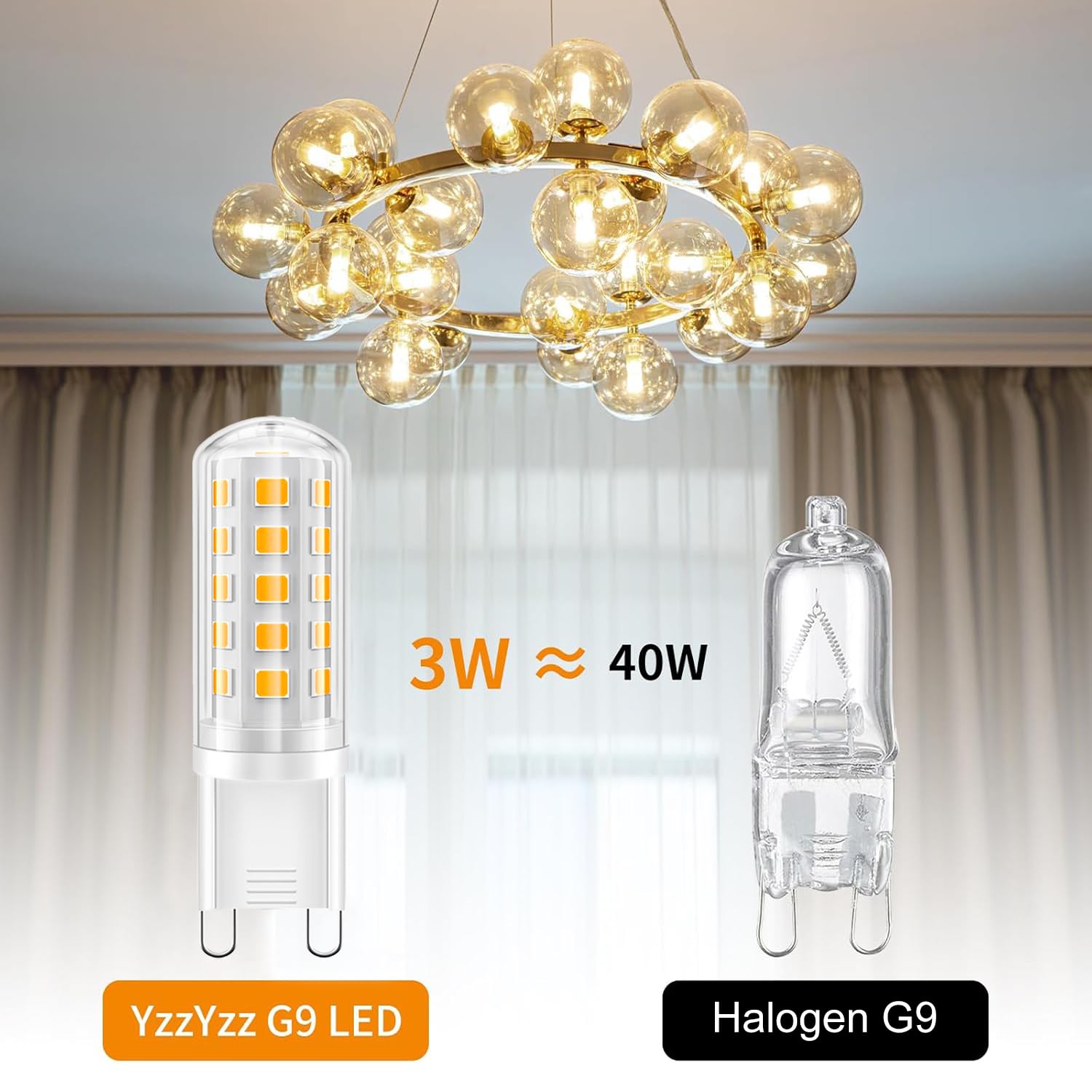 YzzYzz G9 LED Lampe Warmweiss - G9 LED 2700K 3W entspricht 40W Halogenlampe, Glühbirne 410 Lumen, Kein Flackern Lampen 360° Abstrahlwinkel, Nicht Dimmbar Leuchtmittel 2er Pack