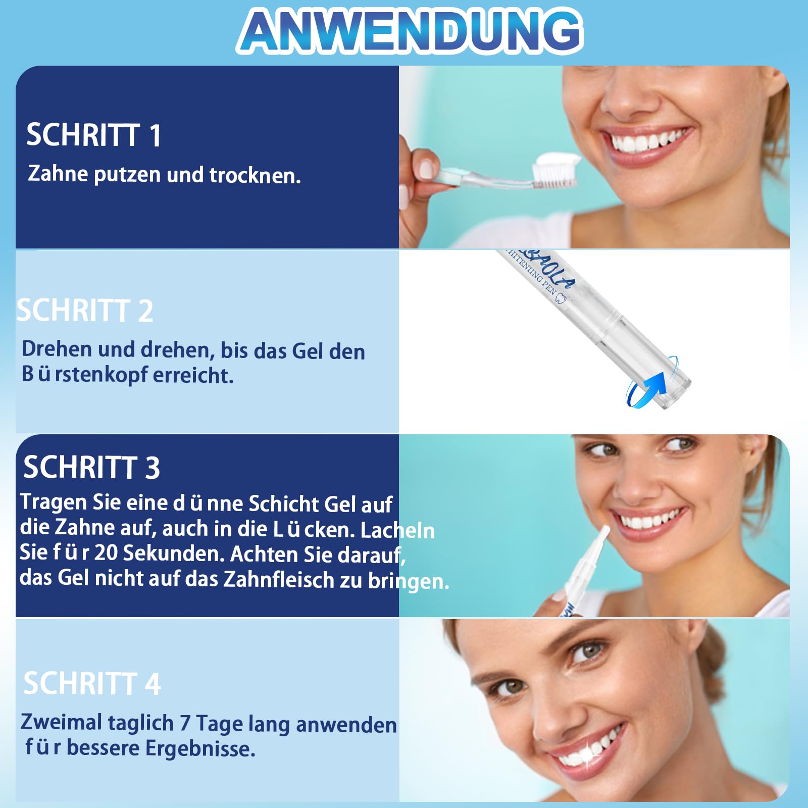 Zahnaufhellung Stift (4 Pens), Quick Zahnweiss Bleaching Gel, Fast Zahnbleaching Set, Wirksamer Zahnweiss Stift, Zahn Weissmacher Hilft Flecken Zu Entfernen
