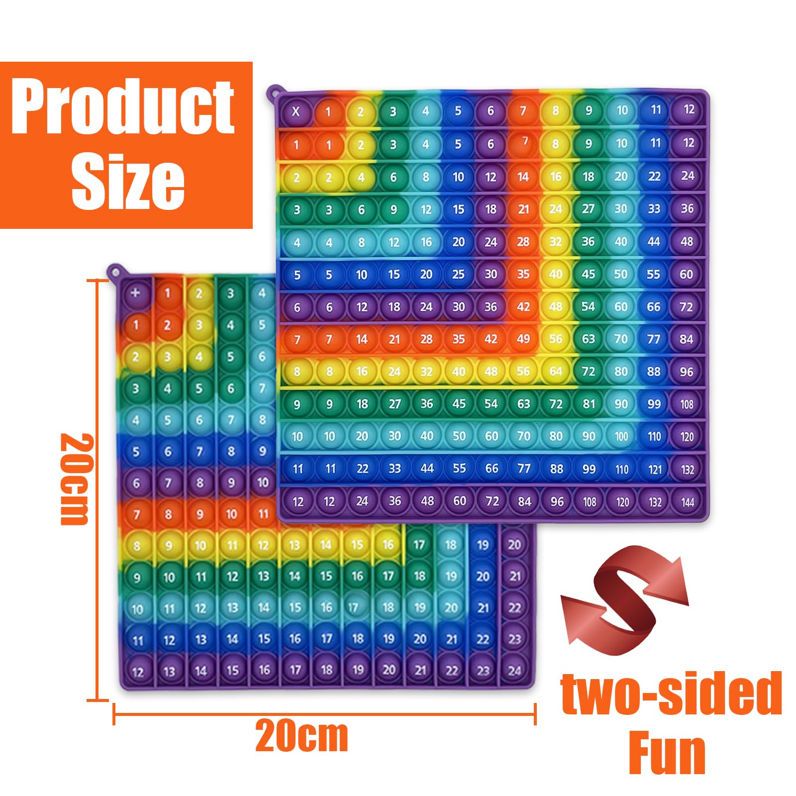 Zamety Pop It 2 In 1, Pop It Spielzeug, 20x20cm Plopper Spielzeug, Multiplikationsbrett und Addition Popit Lernspielzeug, Doppelseitig Popet Fidget Toys Anxiety Toy für Kinder und Erwachsene