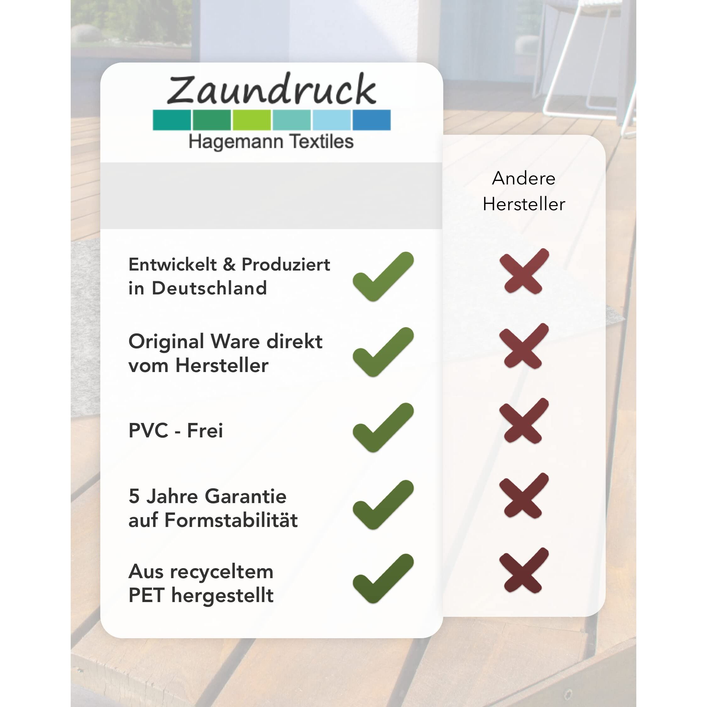 Einzelner Streifen mit fester Grösse von 2,60 m Breite x ca. 19 cm Höhe. Mit diesen Streifen lassen sich im Zaun stilvolle Akzente setzen. Sie lockern den Zaun optisch auf. Sie Sind nicht gedacht um ganze Felder zu bestücken, da die Übergänge nicht bindend ein Bild ergeben. Dieser Artikel eigenes sich perfekt um ihn mit unserem einfarbigem Sichtschutz zu kombinieren. Wichtig! Die Designs bei diesem Artikel entstehen durch Perforation. Es handelt sich lediglich um einzelne Zaunbahnen/ Streifen also keine ganze Rolle!