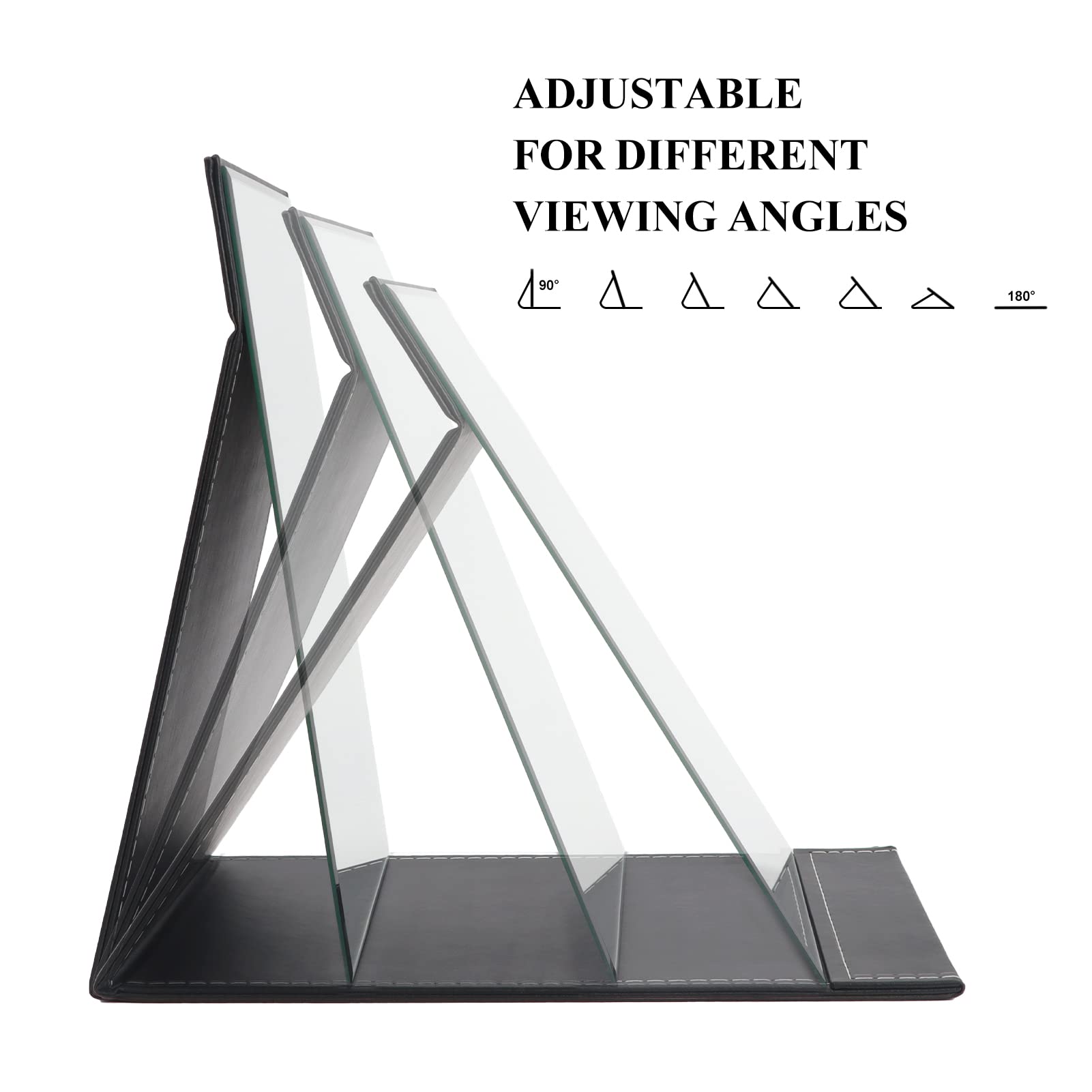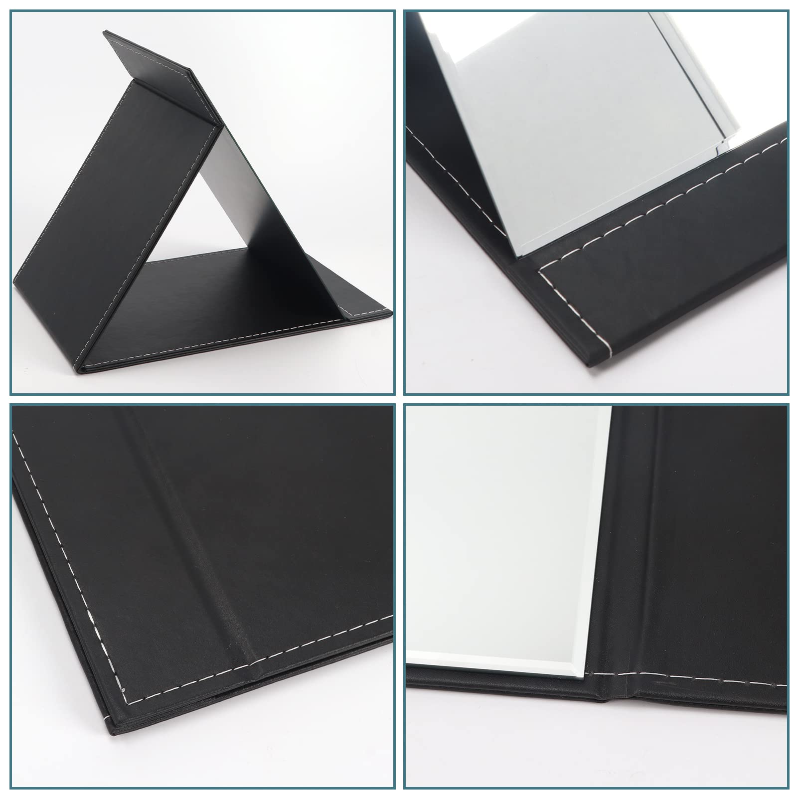 ZBEIVAN Extra grosser tragbarer Faltbarer Make-up-Spiegel, rahmenloser Kosmetikspiegel aus PU-Leder mit Ständer für Schreibtisch, Tisch, Camping, Reisen, persönlich, 30,5 x 22,9 cm, Schwarz