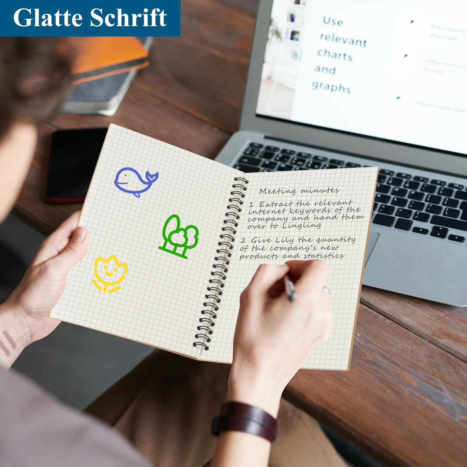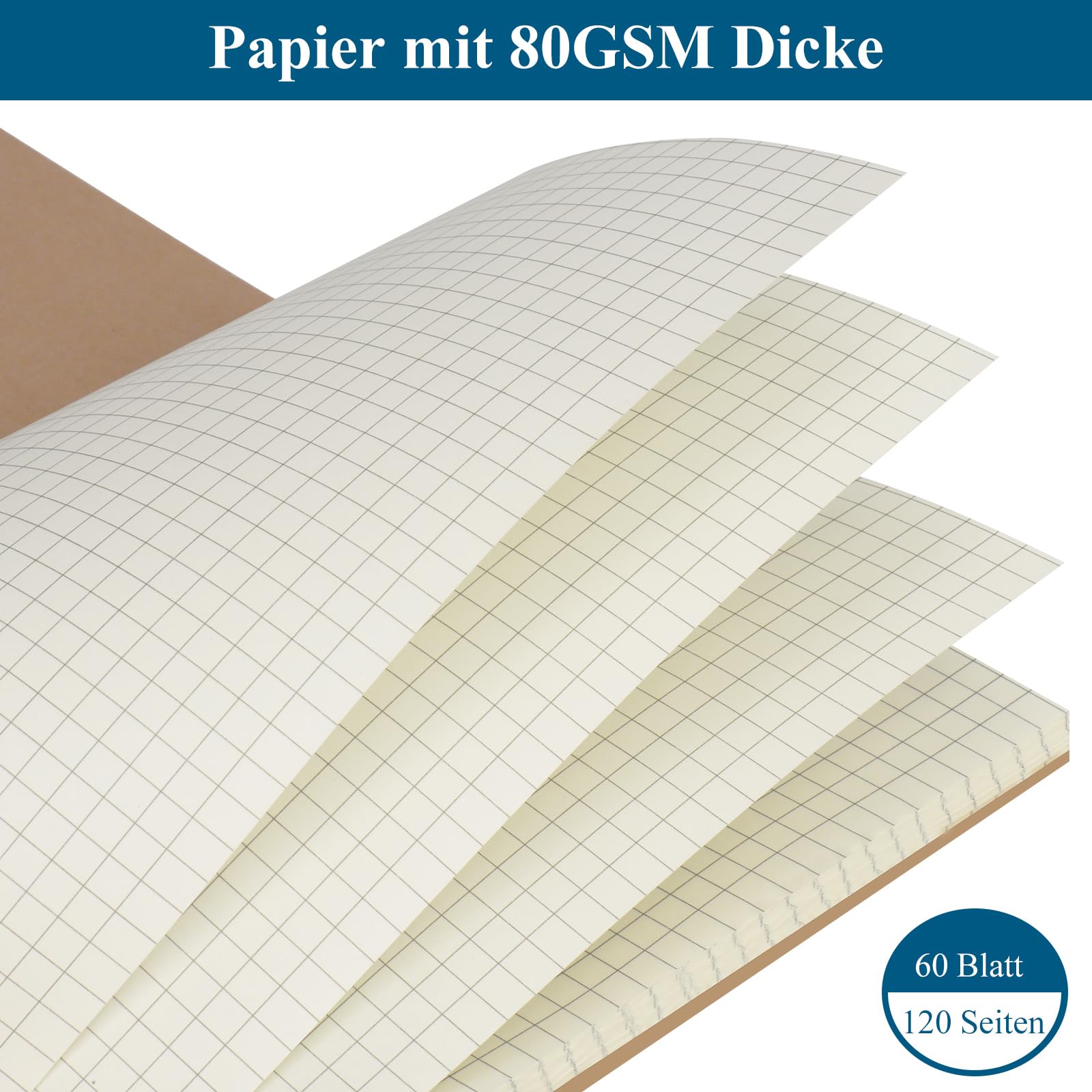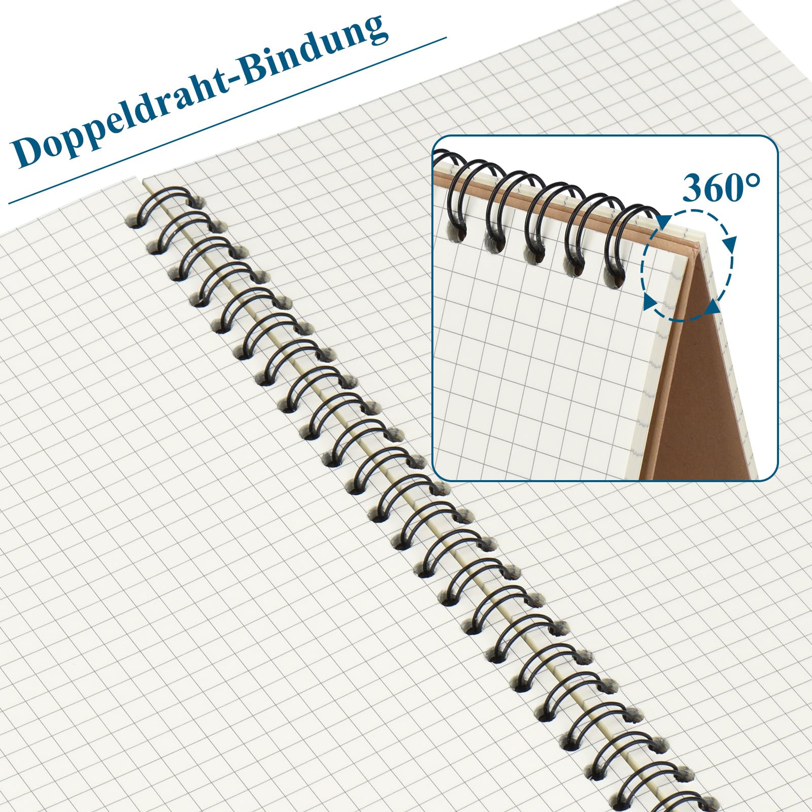 ZCZN Notizbuch A5 kariert, 6 Stück Spirale Notizblock, 60 Blatt, Heft für Büro und Schule