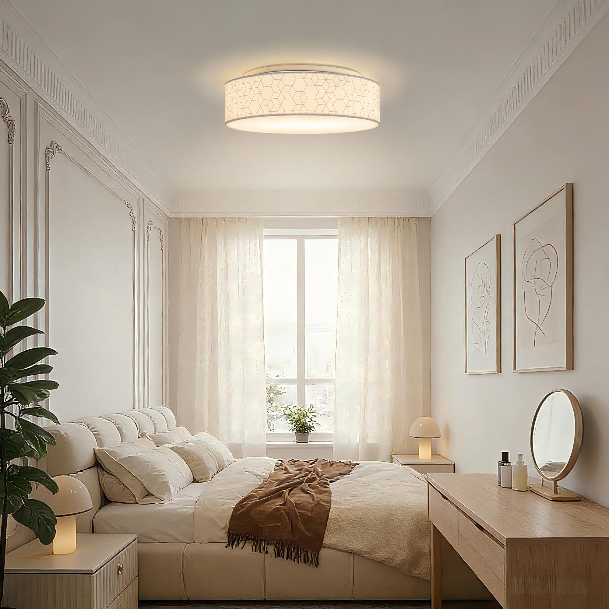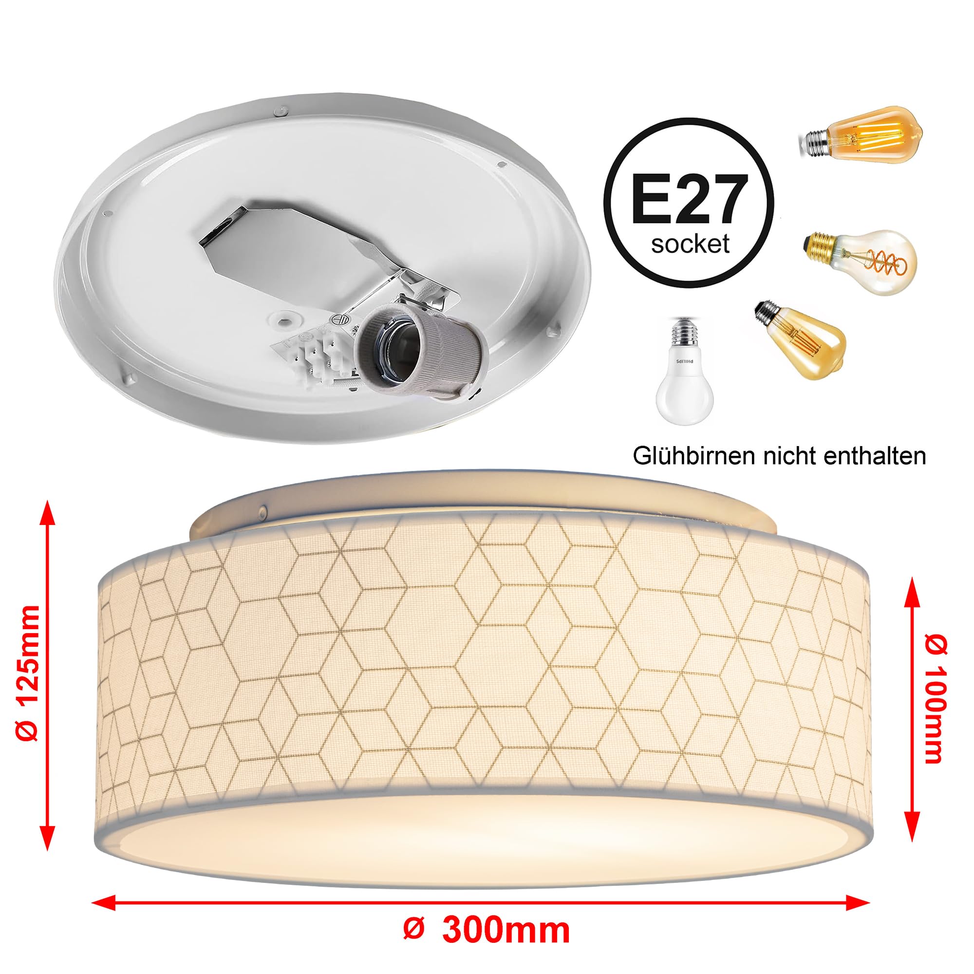 Zedelmaier Deckenlampe Stoff Rund E27x1 max.40W Deckenleuchte mit Stoff-Lampenschirm Wohnzimmer Schlafzimmer Kinderzimmer Flur Lampe Decke(Weisse Würfel,Ø30x12,5cm)