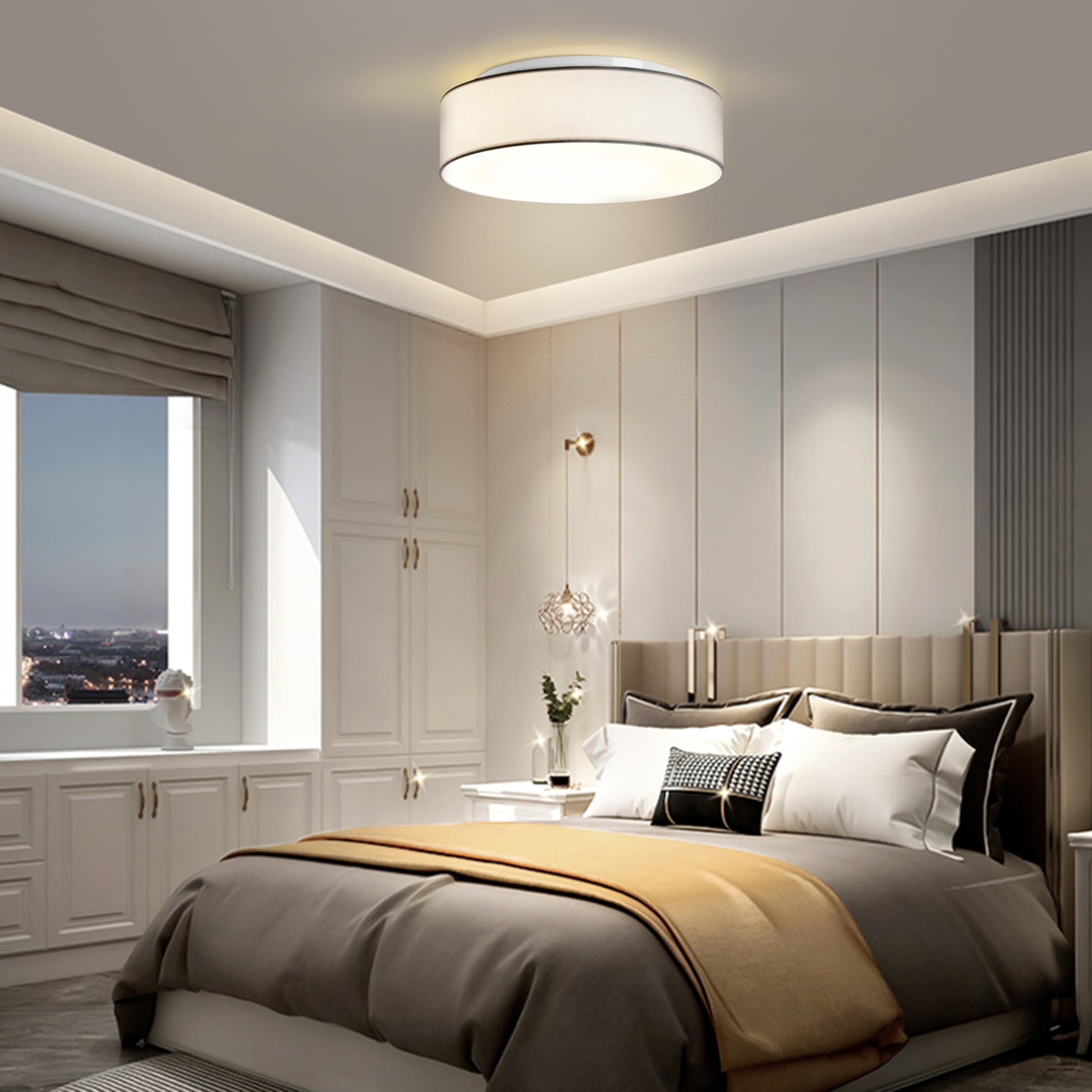 Die Deckenbeleuchtung mit Stofflampenschirm überzeugt durch ihr schlichtes und klassisches Design. Der Stofflampenschirm in mehreren Farben sorgt für eine gemütliche Atmosphäre und passt perfekt zu verschiedenen Einrichtungsstilen.