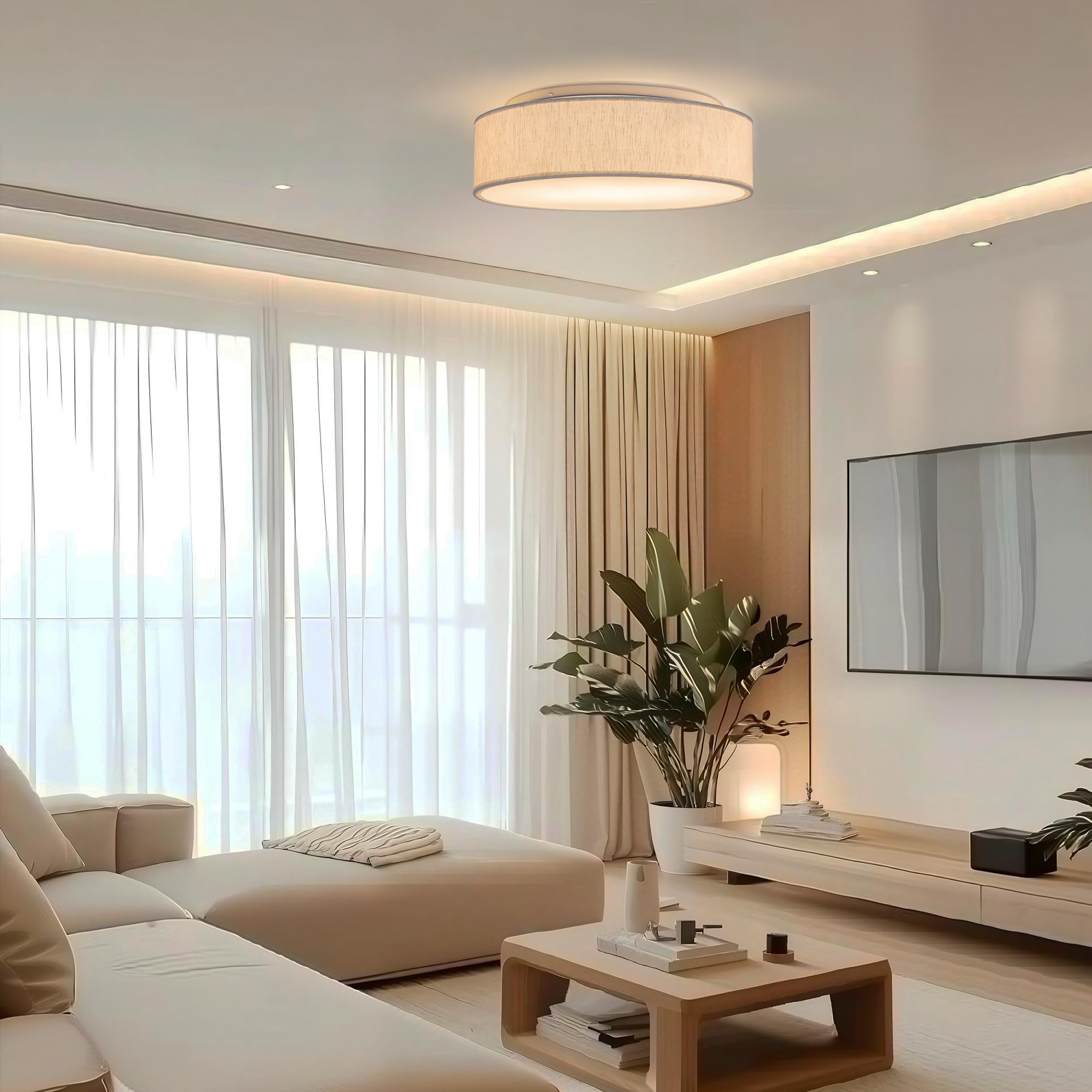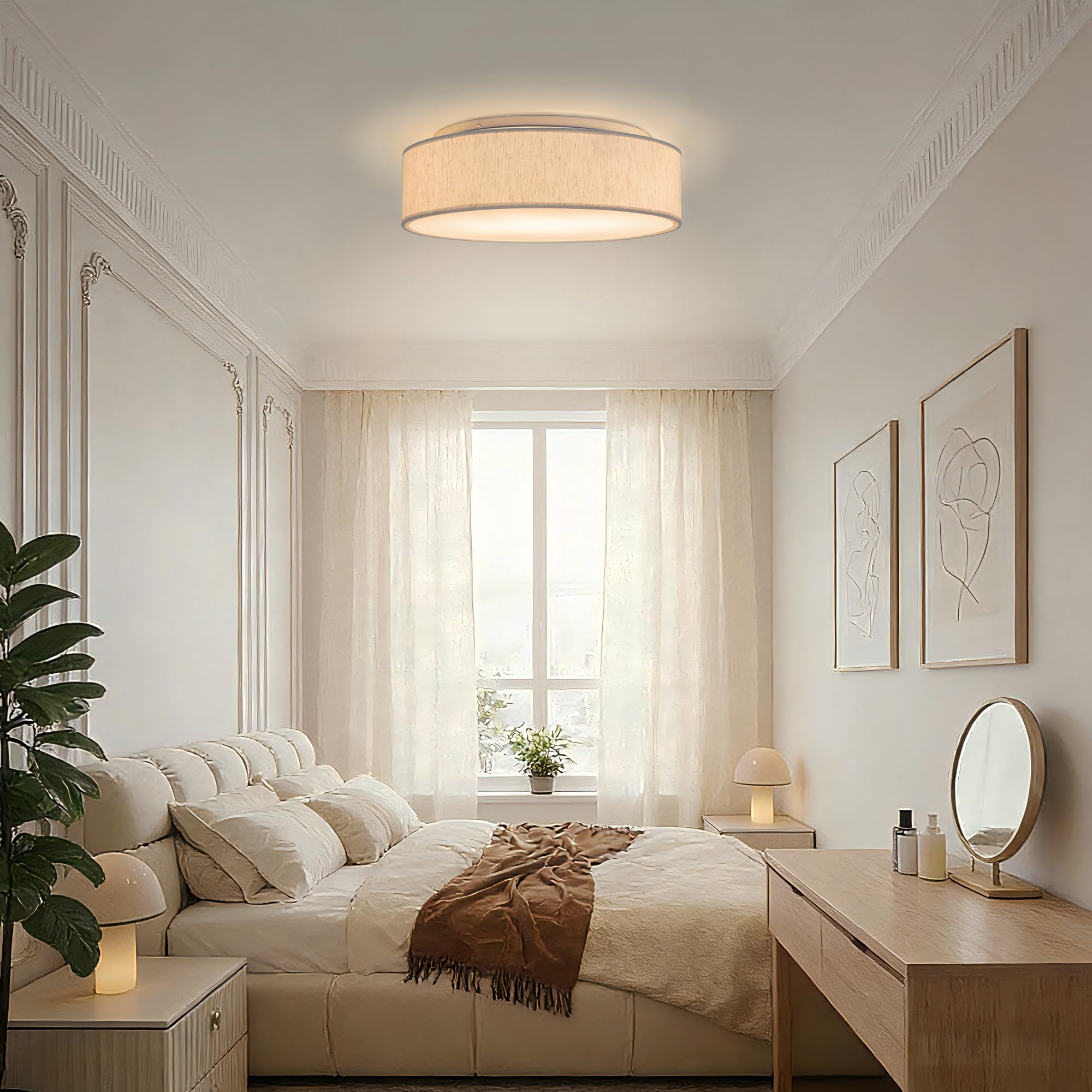 Zedelmaier Deckenlampe Stoff E27 max.40W Deckenleuchte mit Stoff-Lampenschirm Wohnzimmerlampe Schlafzimmer Kinderzimmer Flur Lampe Decke Lampenschirm (Leinen hellbeige, Ø50cm)