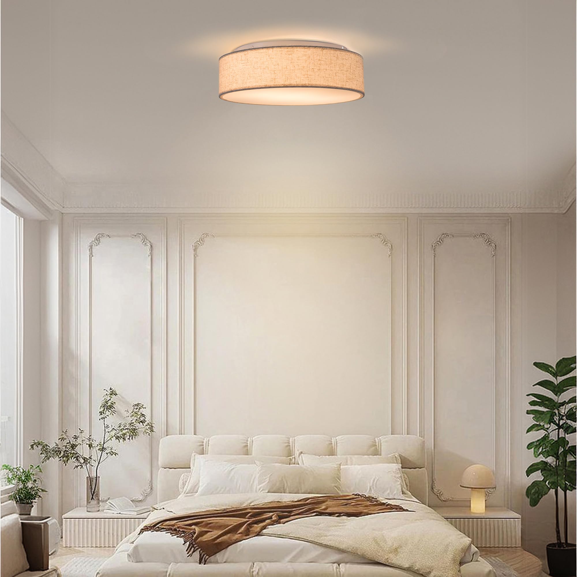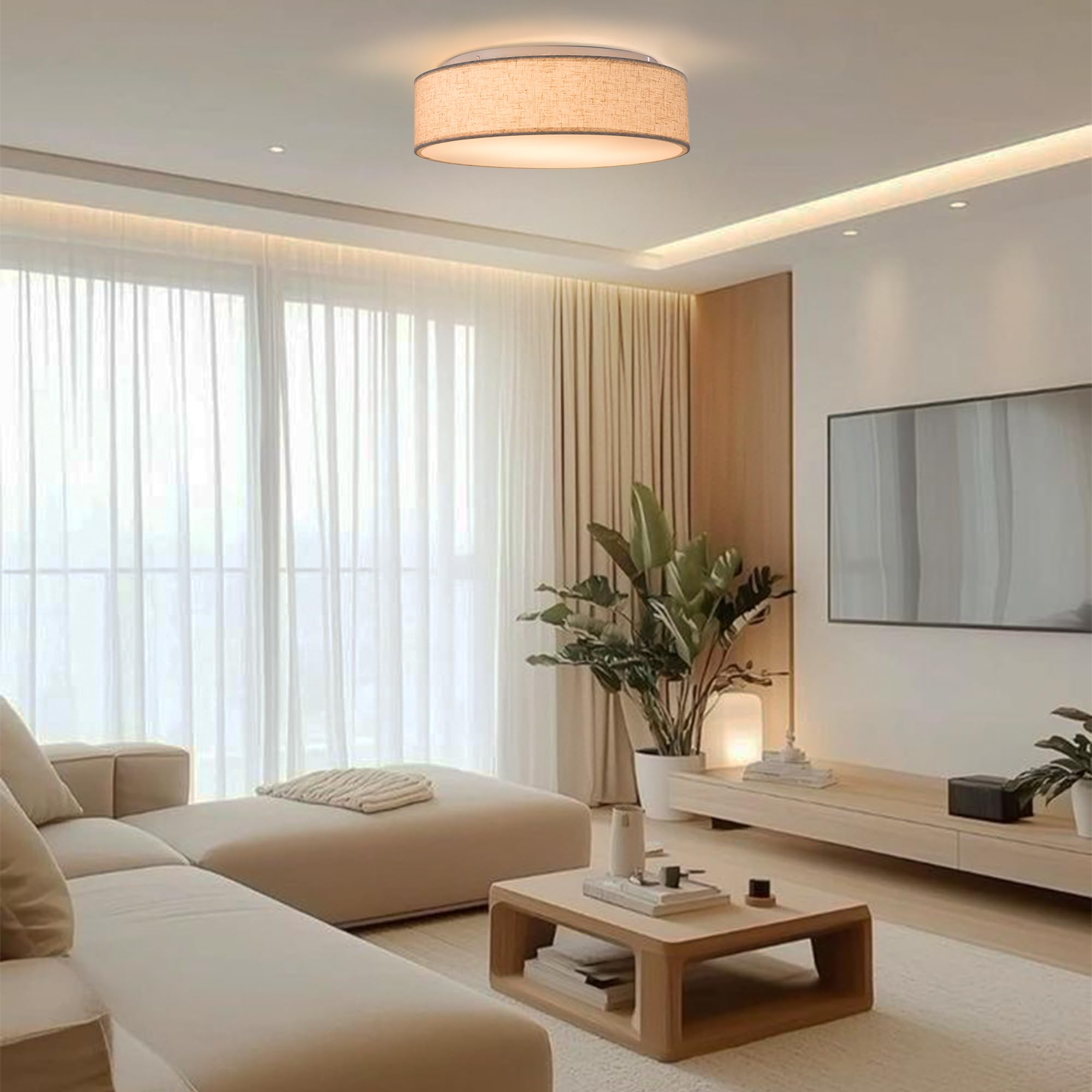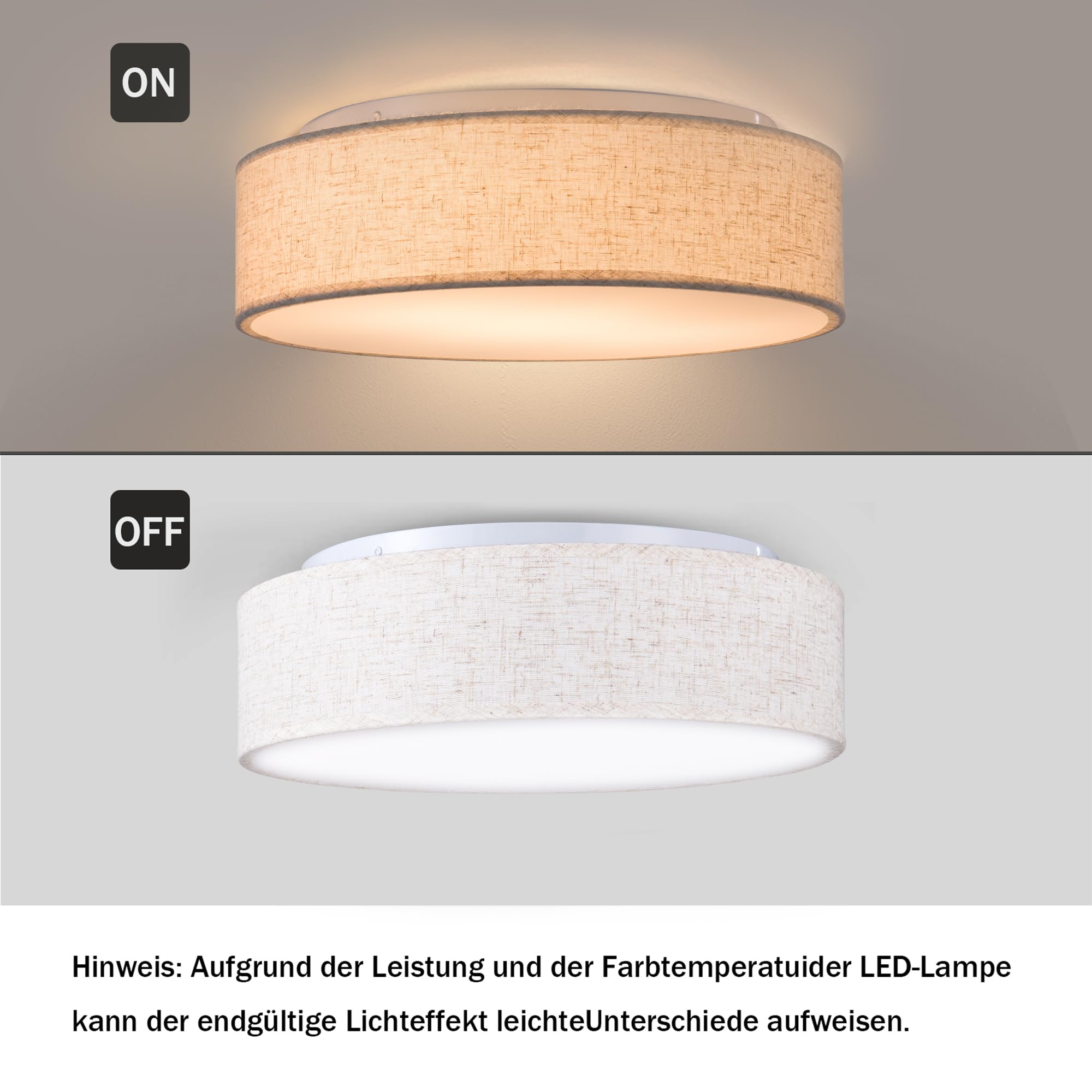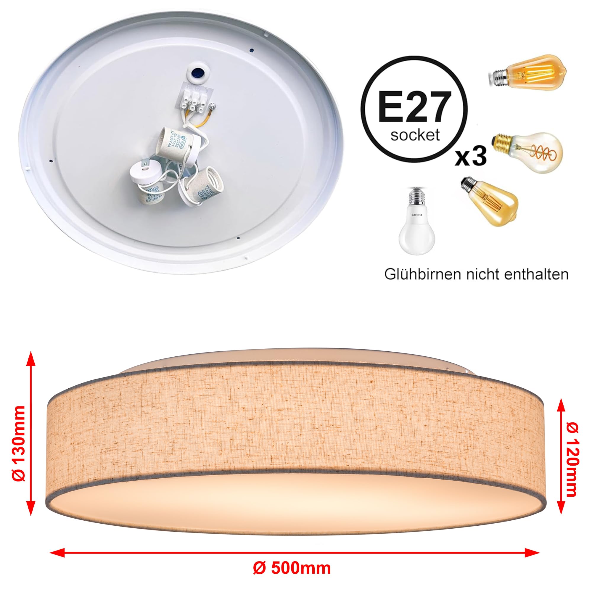 Zedelmaier Deckenlampe Stoff Rund 50cm E27x3 max.40W Deckenleuchte Stoffschirm Wohnzimmer Schlafzimmer Küche Flur Kinderzimmer Lampe Decke Lampenschirm (Leinen-beige, Ø50cm)