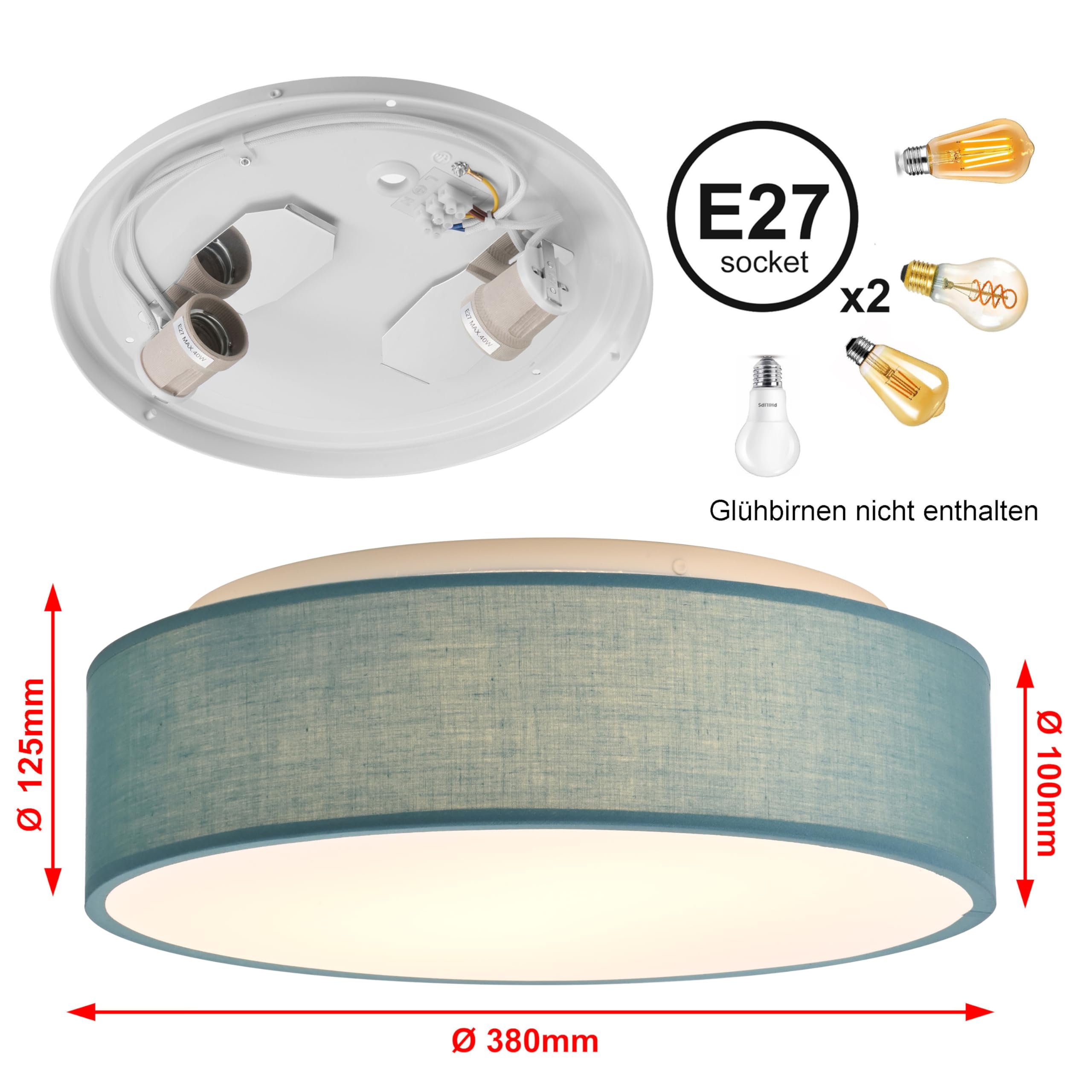 Zedelmaier Deckenlampe Stoff Rund 38cm E27x2 max.40W Deckenleuchte Blau Stoffschirm Wohnzimmer Schlafzimmer Küche Flur Kinderzimmer Lampe Decke Lampenschirm