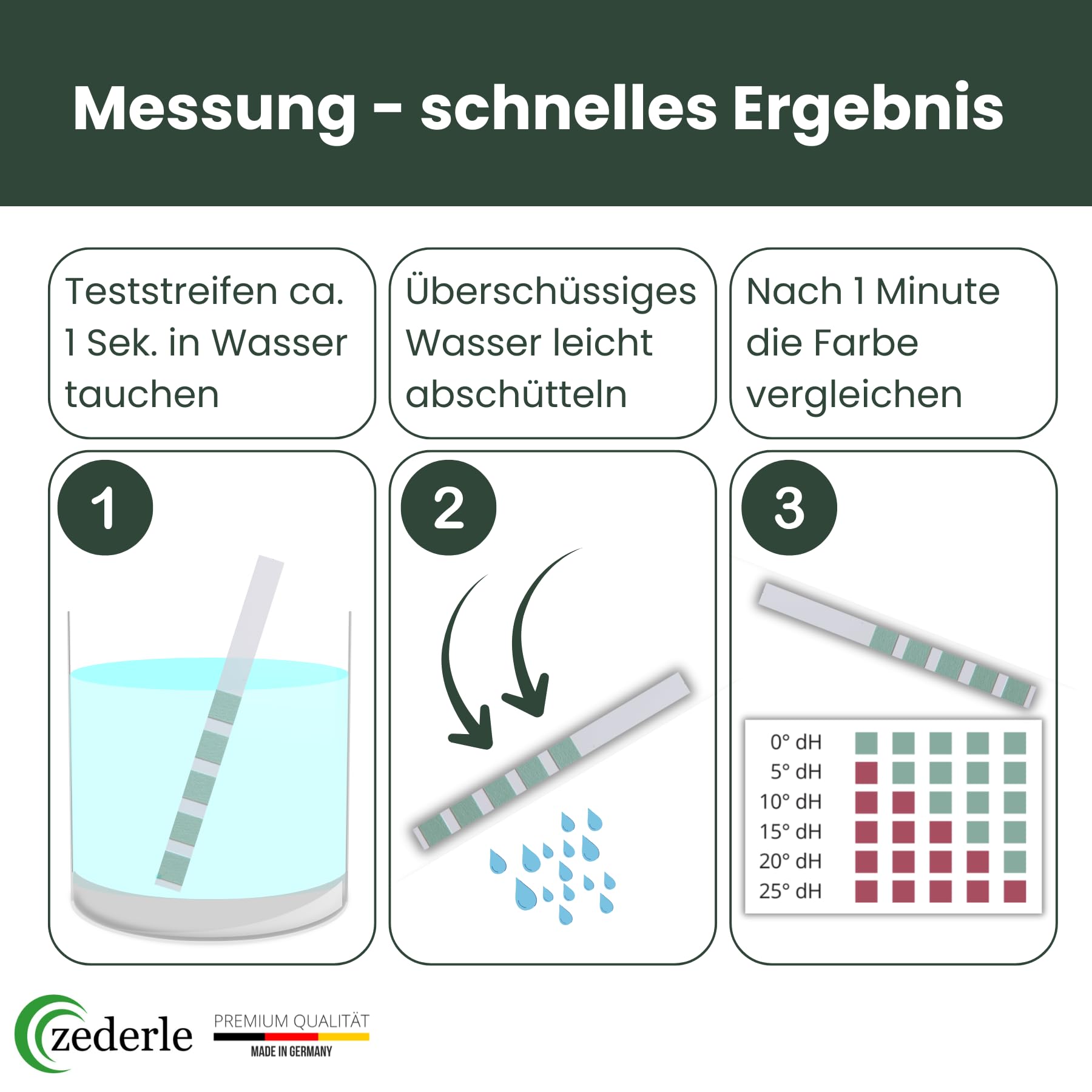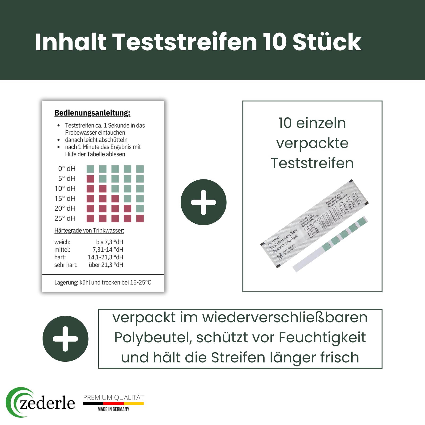 zederle 10 Stück Wasserhärte Teststreifen Testkit einzeln verpackt, versiegelt, Deutscher Härtebereich in dH°, Wasserhärte Test, Kalk Test, Gesamthärte Test - für Trinkwasser, Pool, Teich, Aquarium