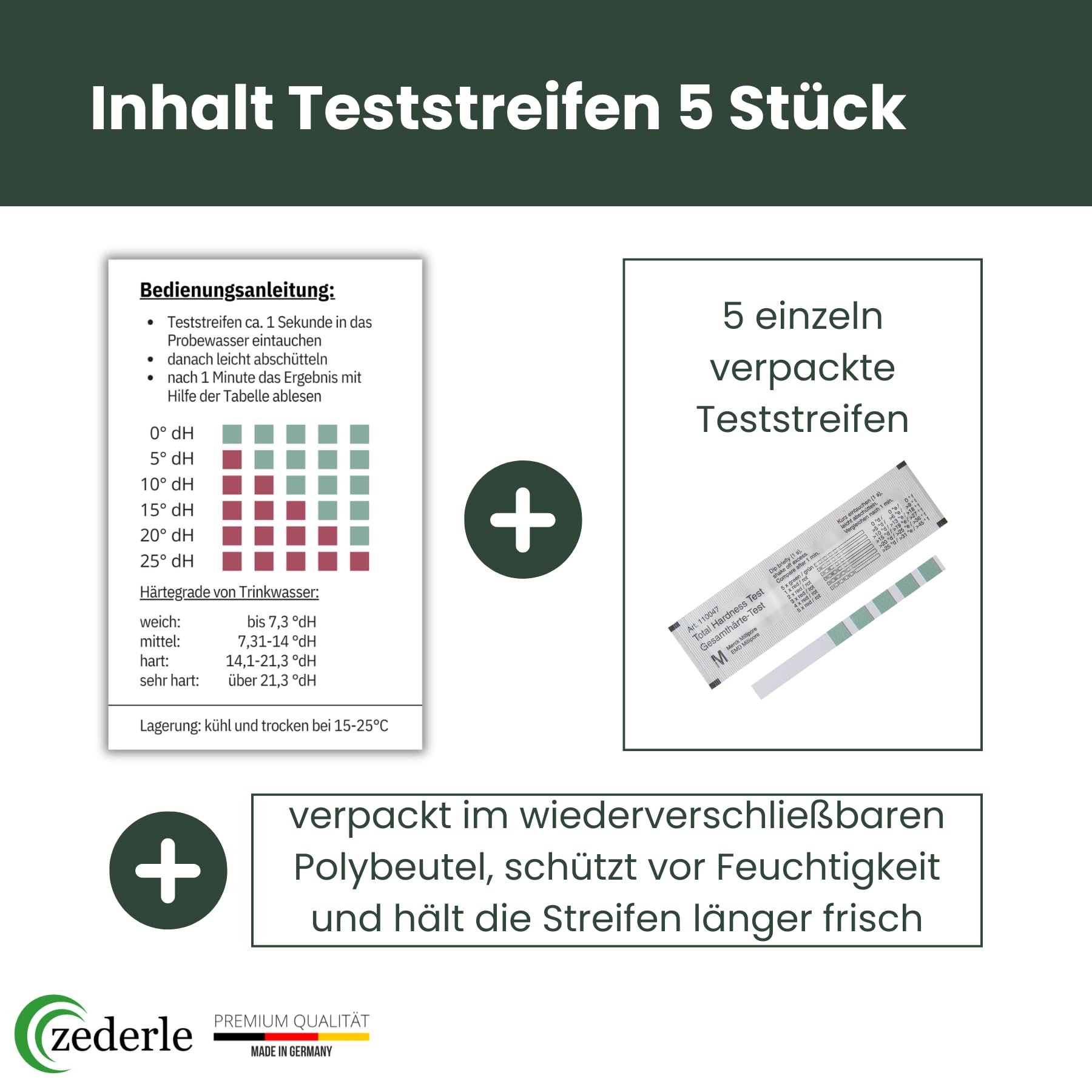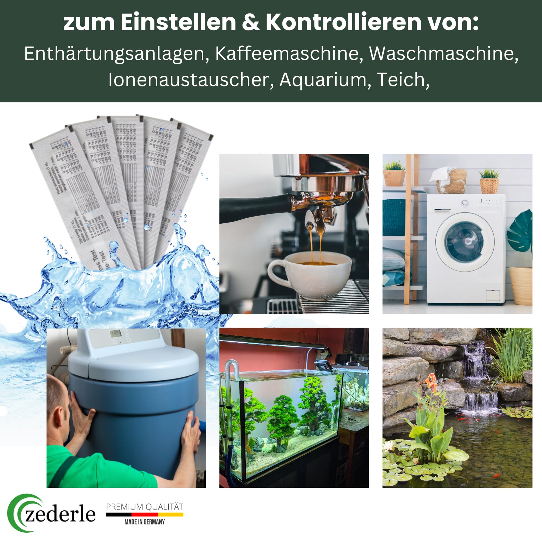 zederle 5 Stück Wasserhärte Teststreifen Testkit einzeln verpackt, versiegelt, Deutscher Härtebereich in dH°, Wasserhärte Test, Kalk Test, Gesamthärte Test - für Trinkwasser, Pool, Teich, Aquarium