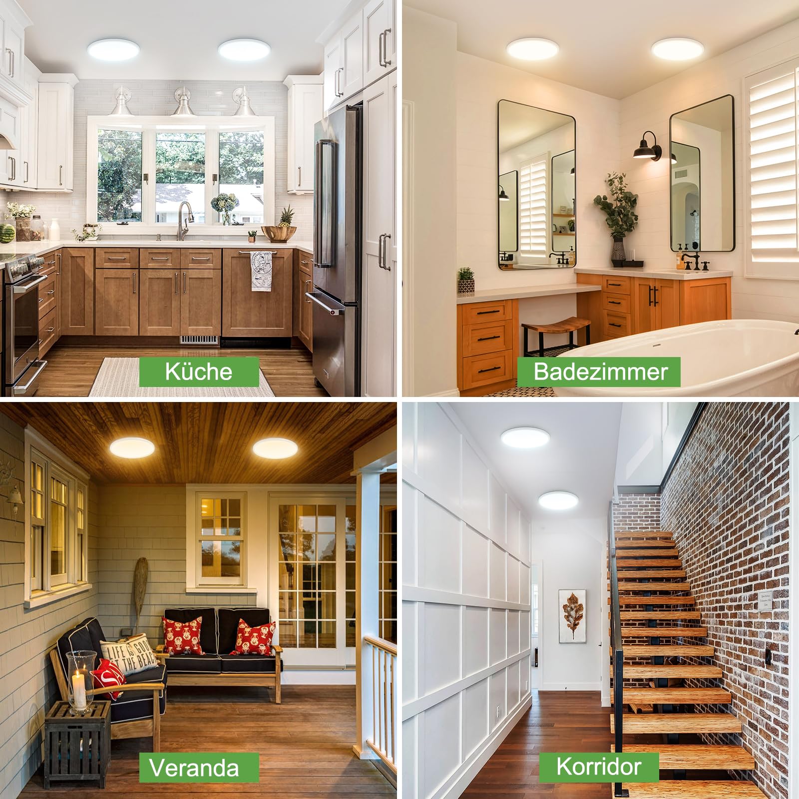 zemty [2Stück/3Farben 3000/4000/6500K LED Deckenleuchte Flach, 15W 1800LM Ø18cm Deckenleuchten, Rund Ultra Dünn Deckenlampe LED Lampen Deckenlampen,Deckenbeleuchtung für Badezimmer,Küche,Schlafzimmer