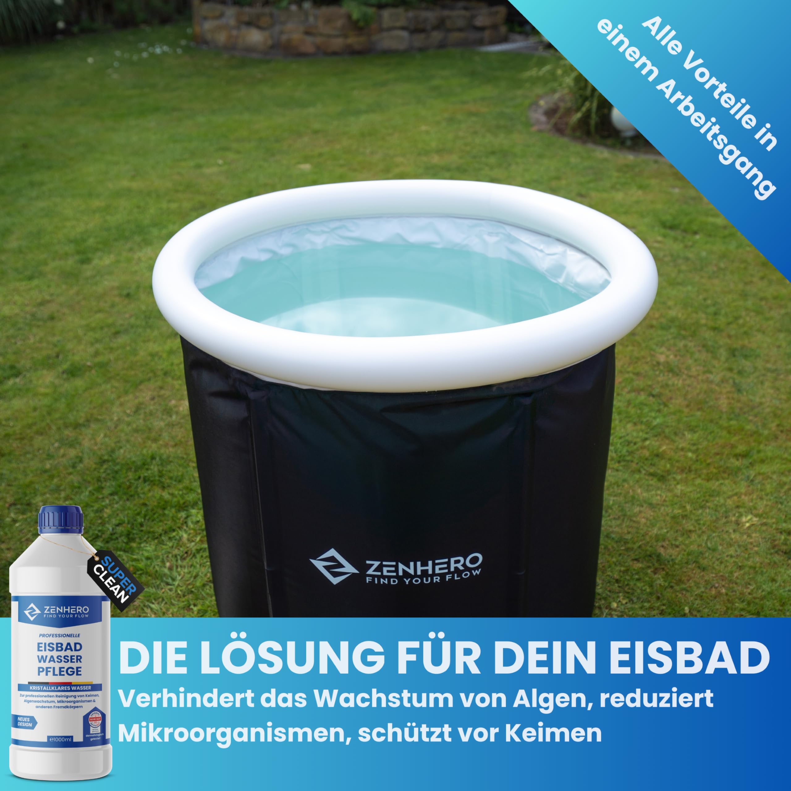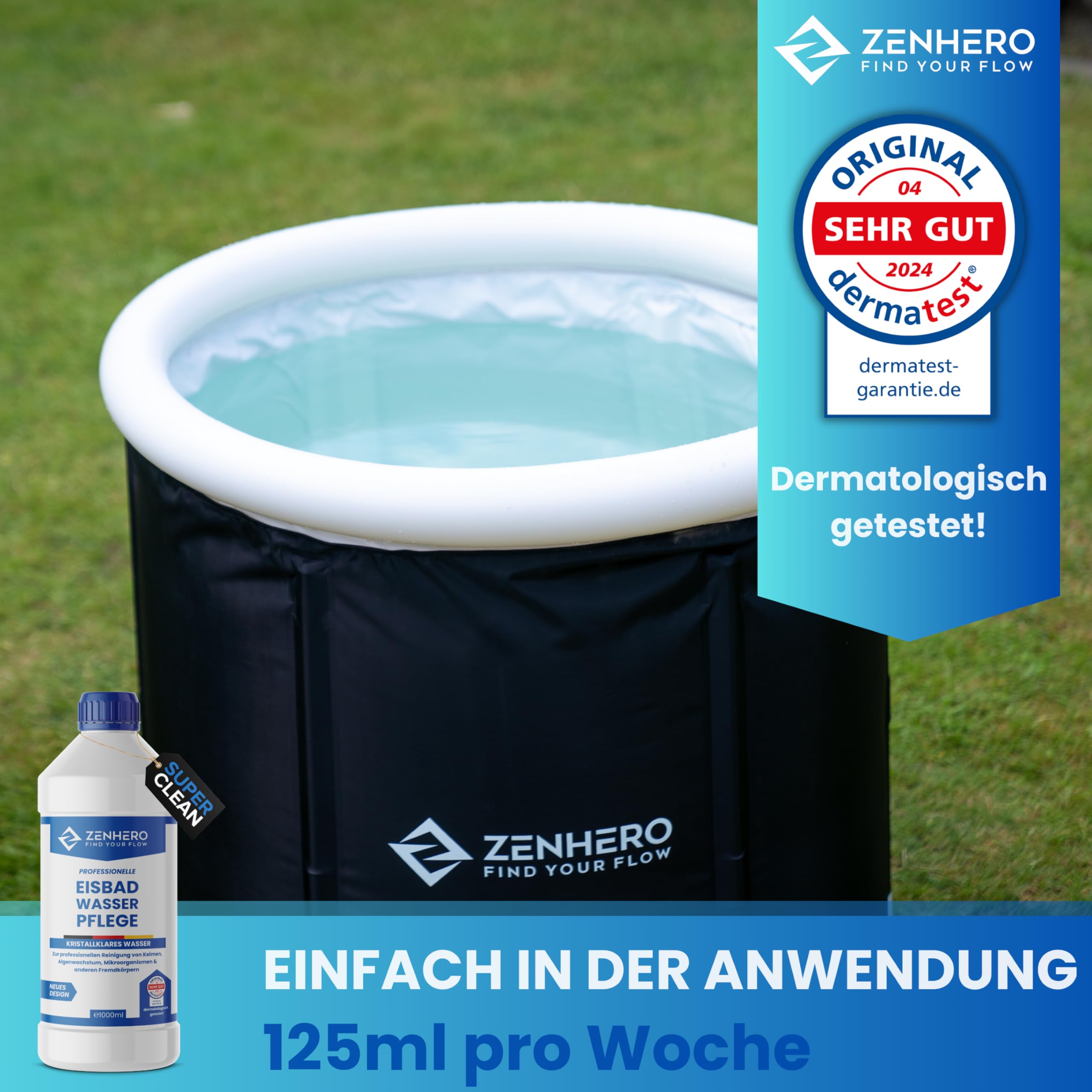Zenhero® Eisbad Wasserpflege MD Water clean 1000ml – Hautfreundlich & effektiv – Naturidentischer Wirkstoff – Dermatest SEHR GUT ausgezeichnet – Für Eisbad, Eisfass, Eispool – Made in Germany