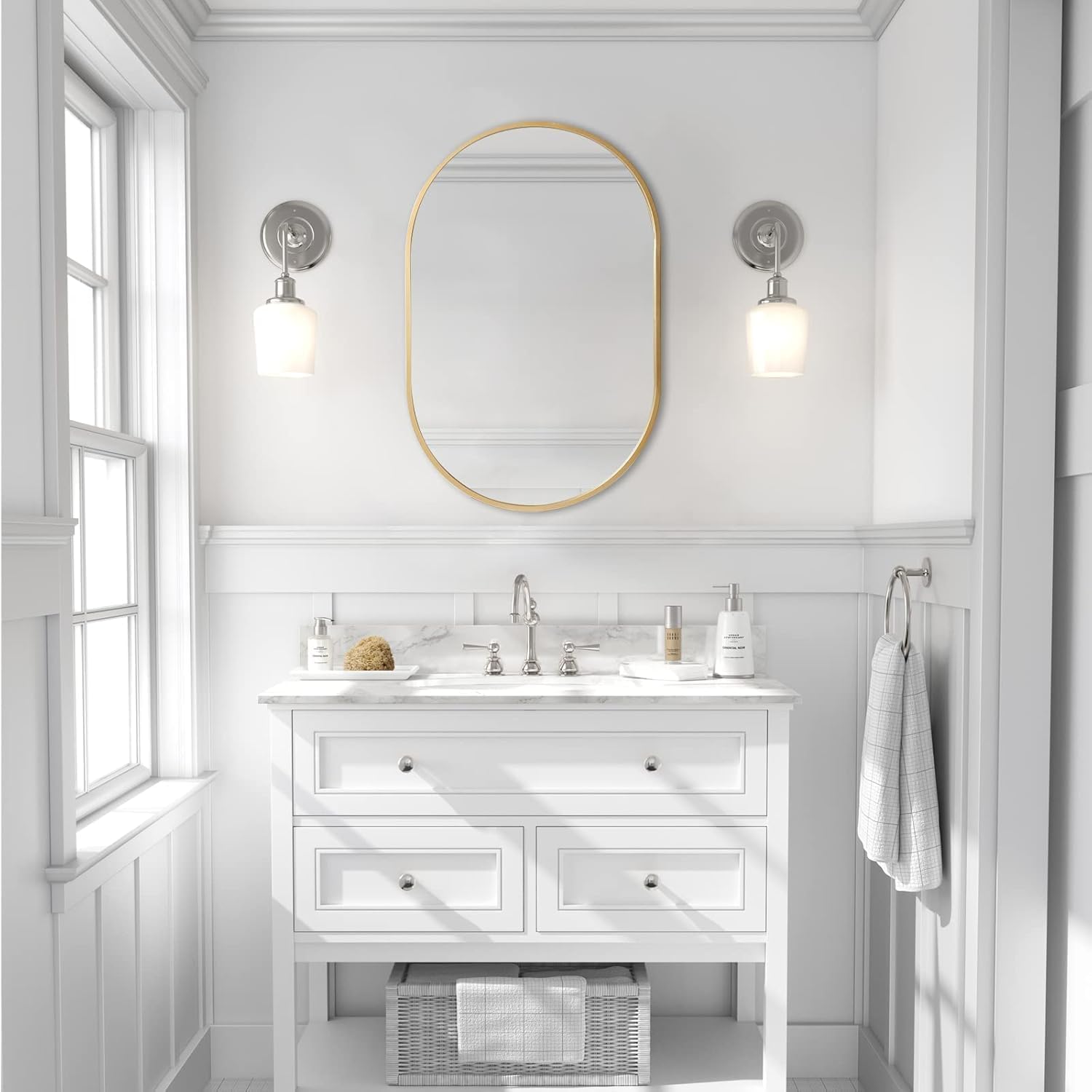 Spiegel Oval Gold, 80x51 cm Metall gerahmt hängenden Wandspiegel, grosse Badezimmer Spiegel, Gold Wandspiegel für Wohnzimmer Schlafzimmer Entryway Home Decor