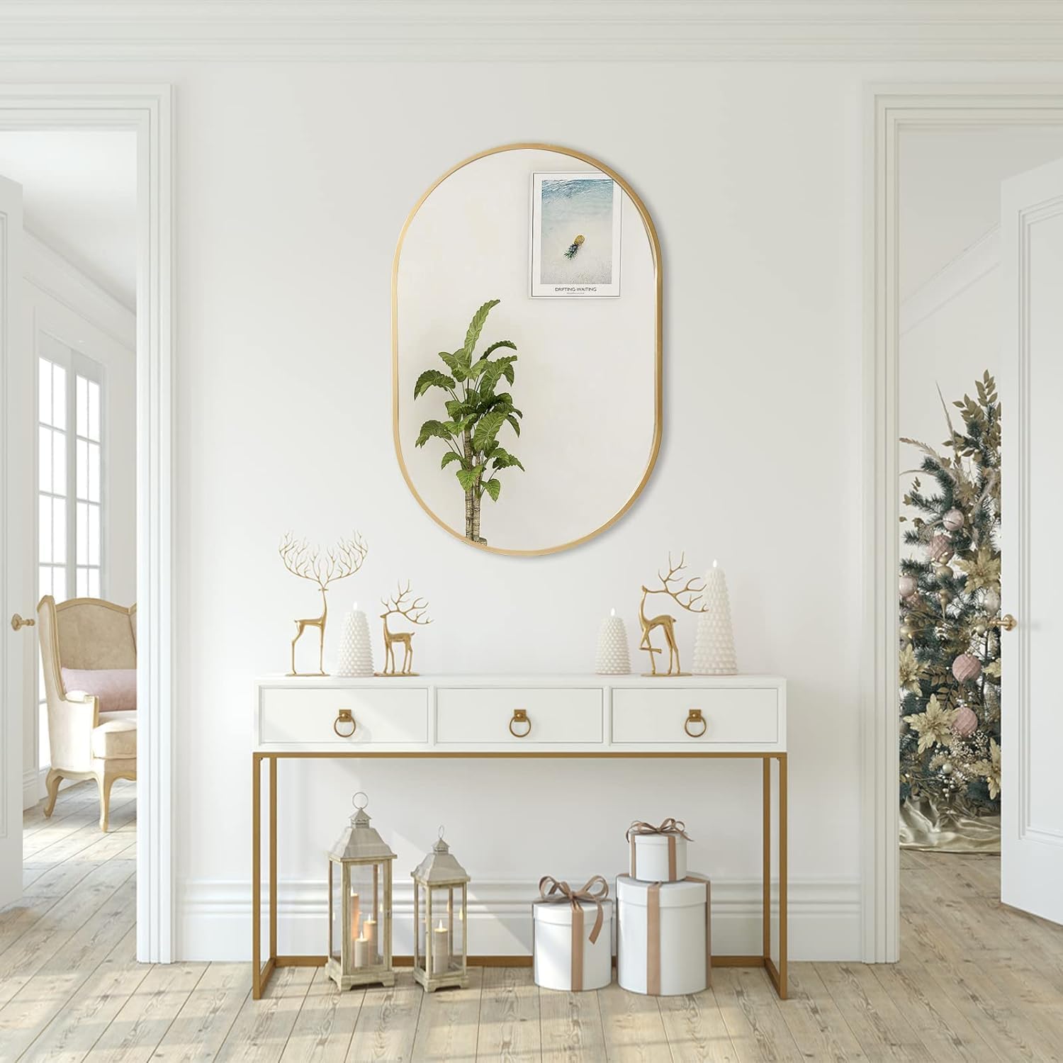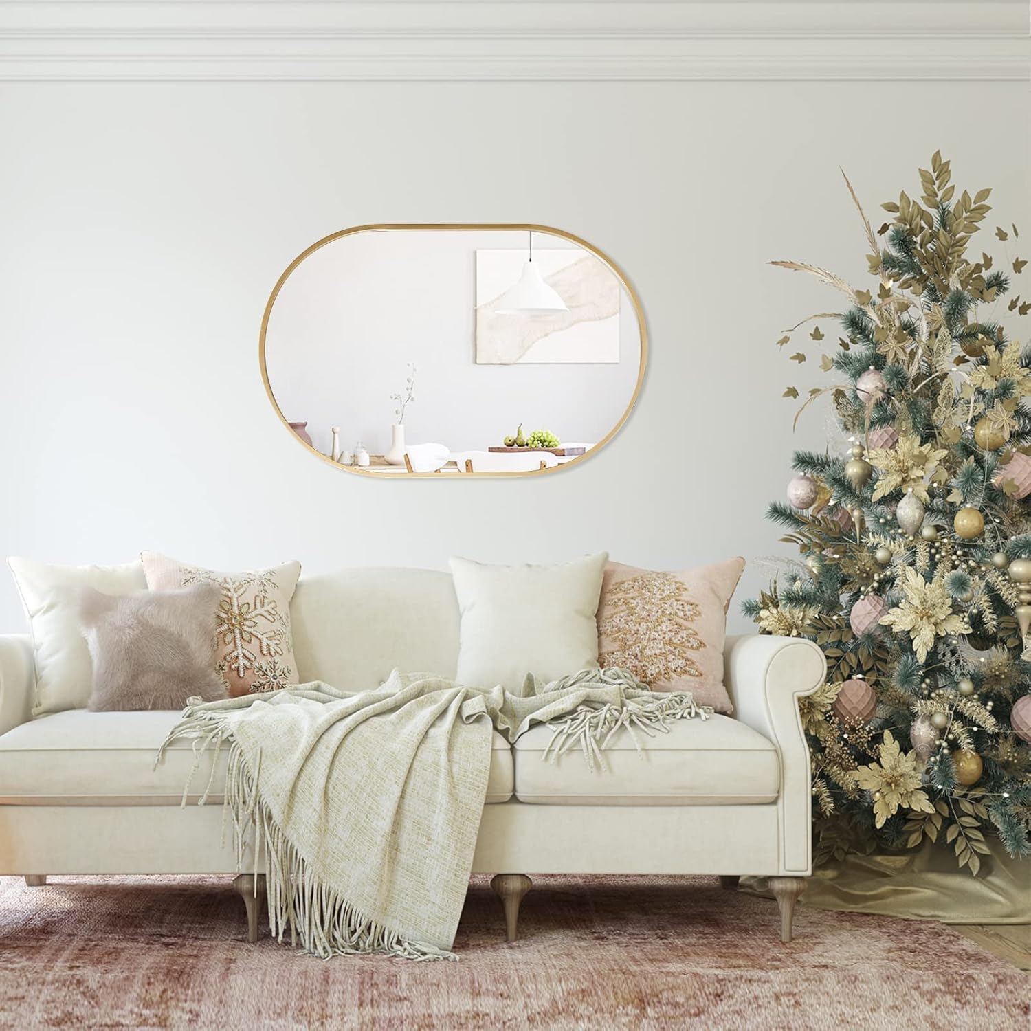 zenmag Spiegel Oval Gold, 80x51 cm Metall gerahmt hängenden Wandspiegel, grosse Badezimmer Spiegel, Gold Wandspiegel für Wohnzimmer Schlafzimmer Entryway Home Decor