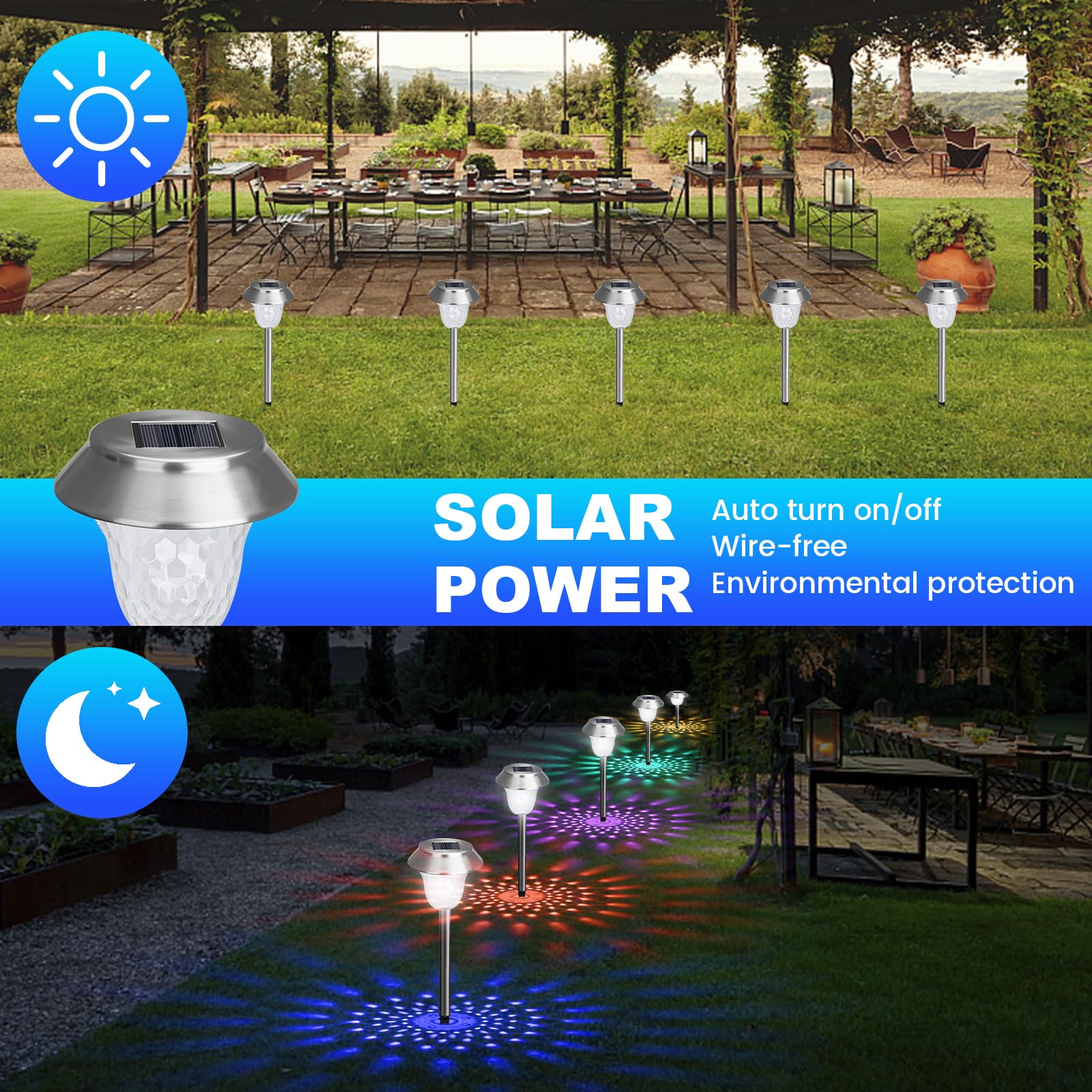ZEWETO Solarlampen für Aussen Garten, 4 Stuck LED Solarleuchten, Einfacher Wechsel zwischen zwei Modi, IP65 Winterfest, 10 Stunden Lang Anhaltendes Edelstahl Dekorative Licht für Aussen, RasenLandschaft