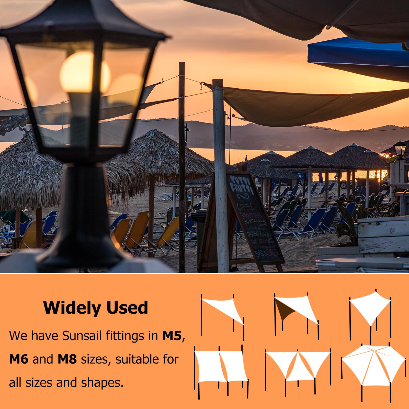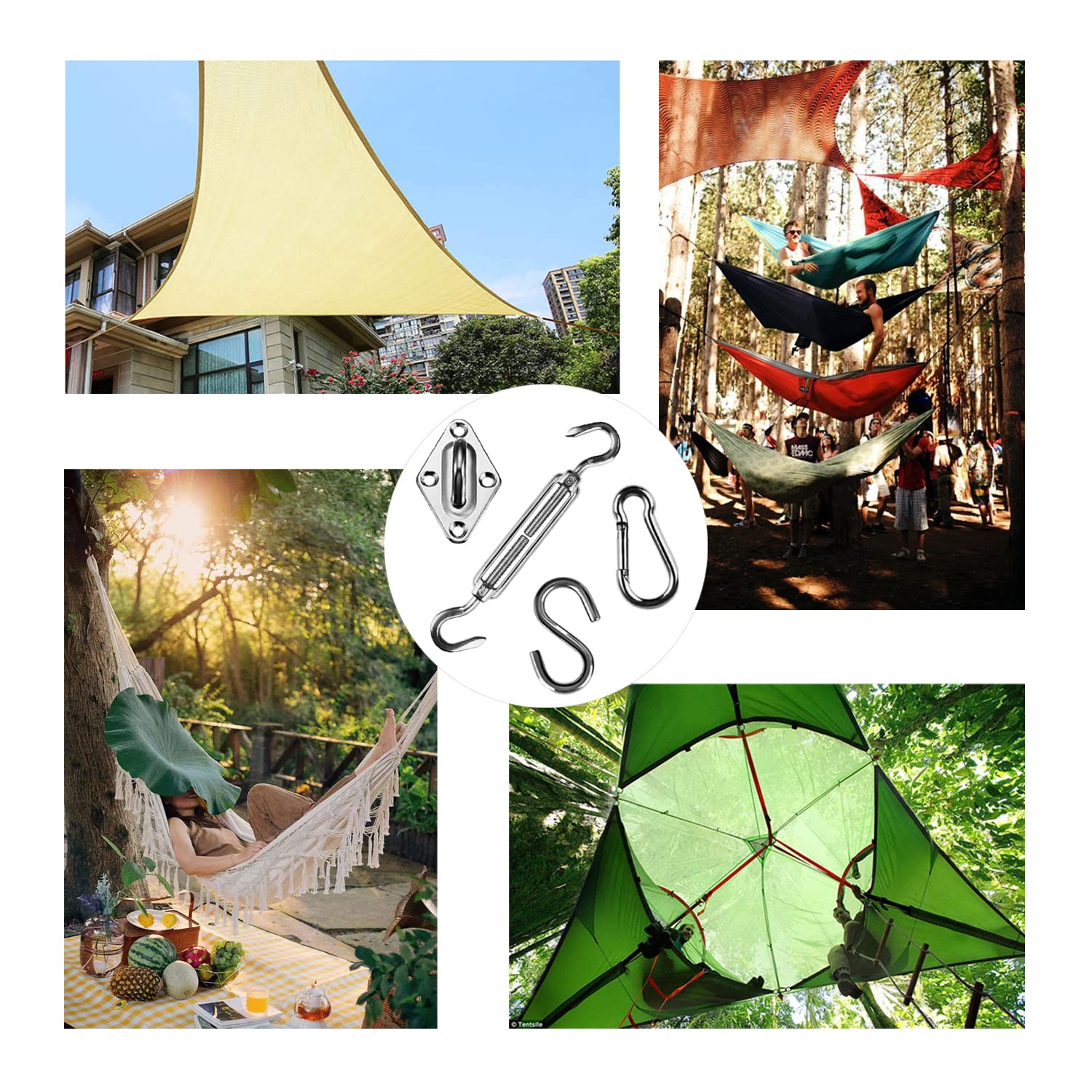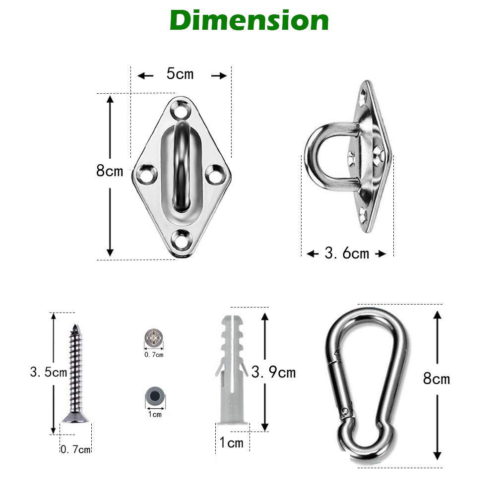 Das Set ist so konzipiert, dass es langlebig und zuverlässig ist und kommt mit dem Wesentlichen, das Sie benötigen, um Ihr Sonnensegel sicher und einfach aufzuhängen.