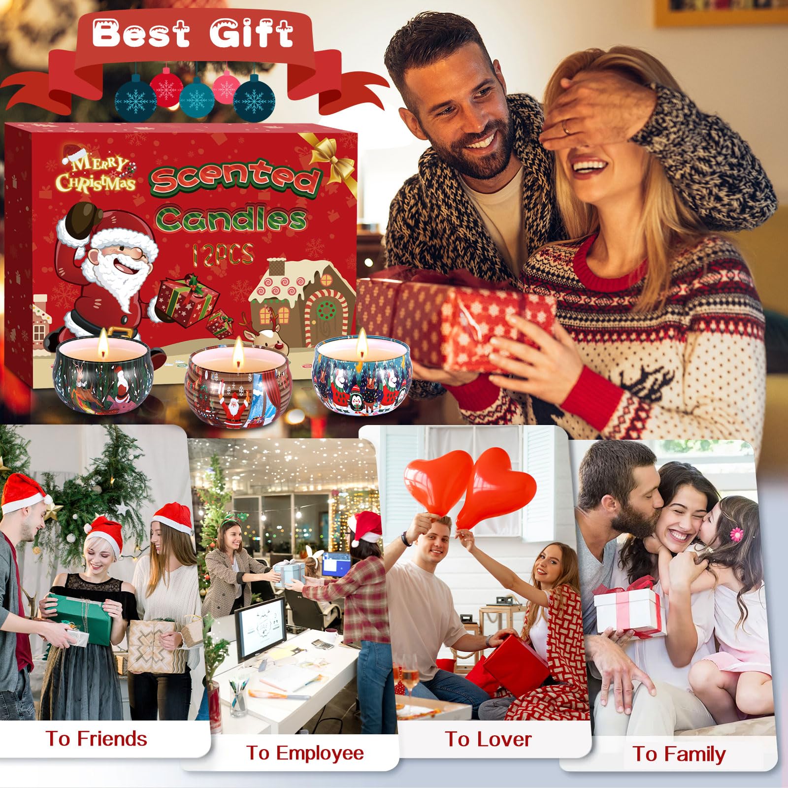 ZHHGOO Duftkerze Set,Christmas Scented Candle Set,Natürliches Sojawachs Kerzen Set,Aromatherapie Kerzen Weihnachtskerzen-Set Aroma Kerzen für Stressabbau,Weihnachten,Geburtstag (12 Stück)
