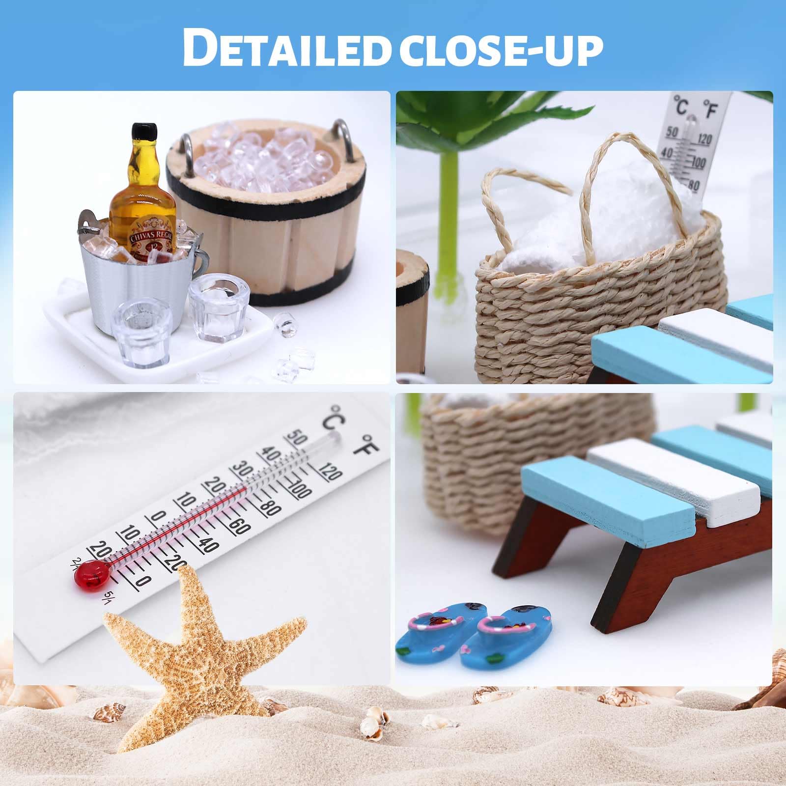 ZHIYUQL® 14 Stück Miniatur Deko Sauna Zubehör Set, Wellness Deko Geschenk, Mini Strand Zubehör, Miniatur Garten Deko für DIY Dekoration