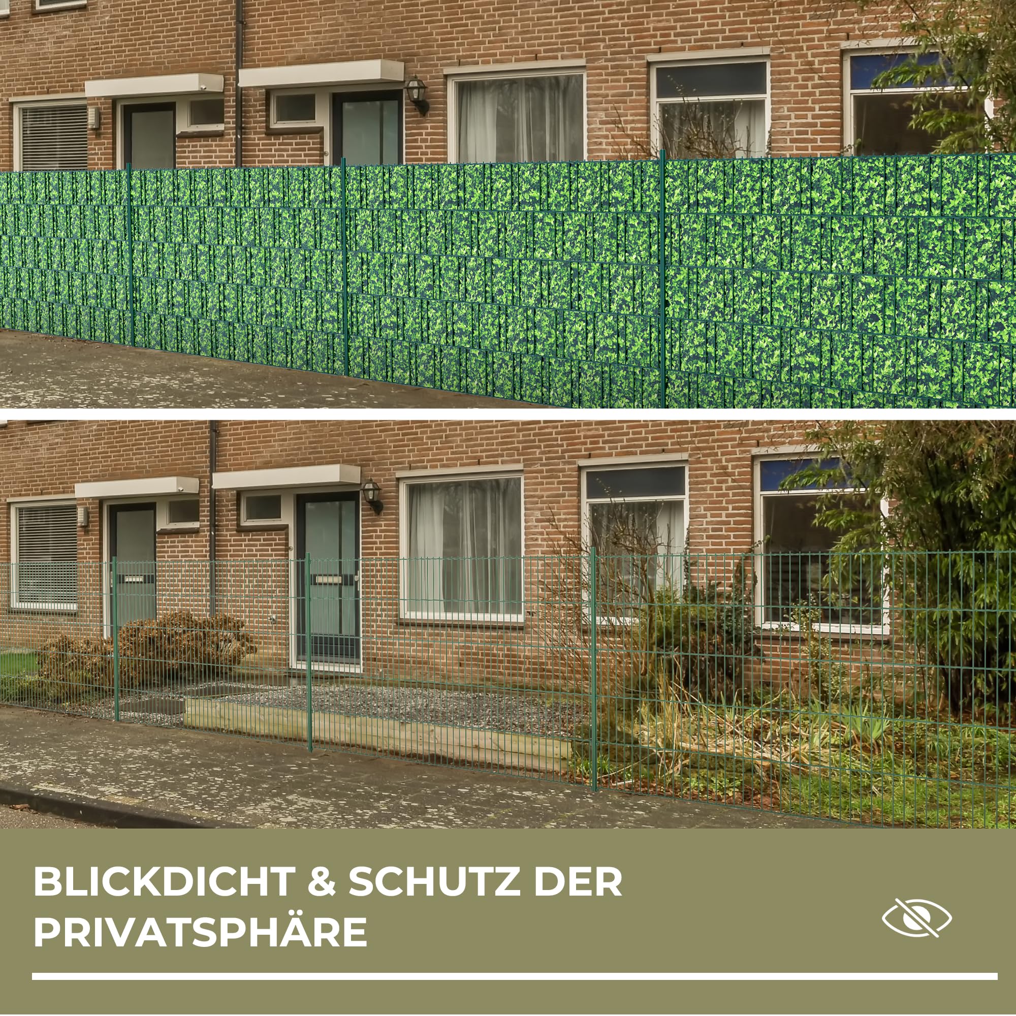 - 【Schutz der Privatsphäre】 Die PVC Doppelstabmattenzäune schützen Ihren Balkon, Terrasse oder Garten vor Wind und neugierigen Blicken. Sind die PVC Sichtschutzstreifen montiert, fixieren Sie die Enden noch mit den Befestigungsklammern und sorgen damit ganz unkompliziert für einen optisch runden und funktionalen Abschluss.