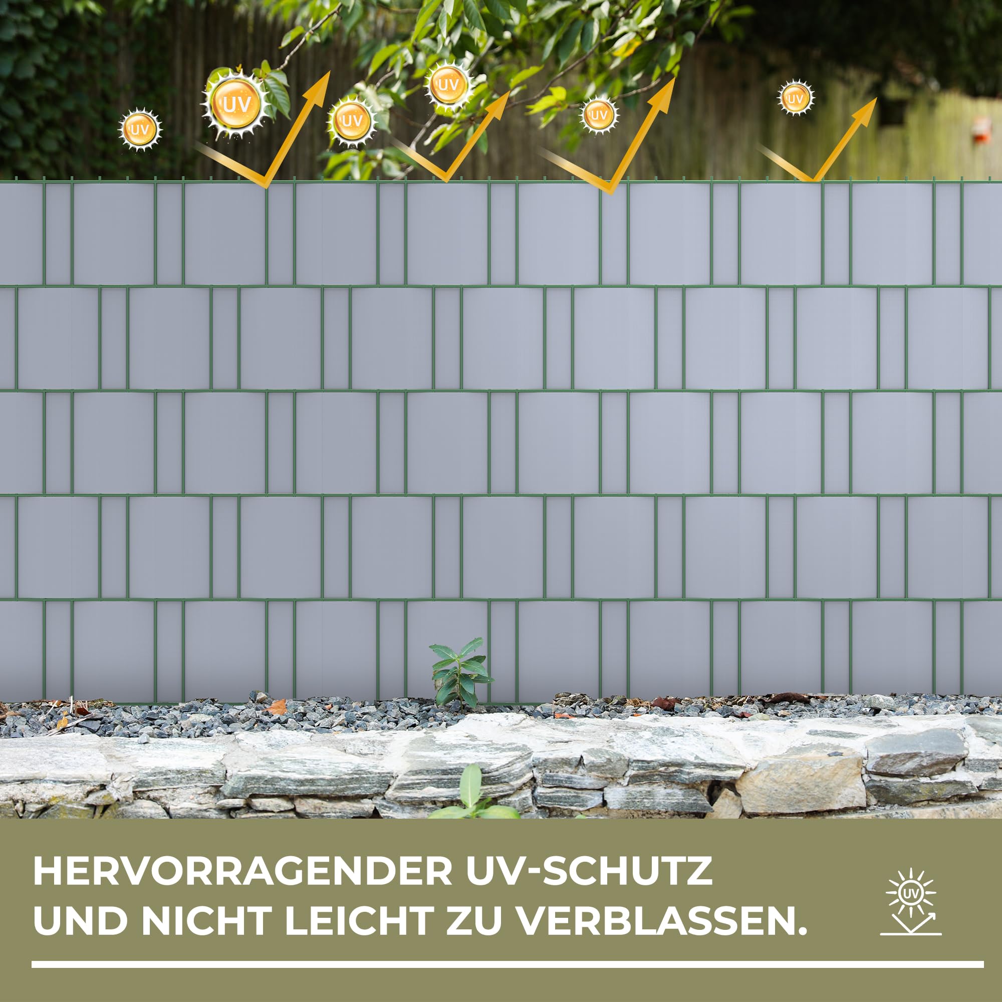 - 【Spezialität von Produkt】 Grössen: 35m,Höhe: 19 cm. Sichtschutzstreifen sind doppelseitig bedruckt, witterungs- und UV-beständig und sind reflexionsarm. Temperaturbereich: -30° C bis +60° C. Sie hat die maximal langlebig, Abriebfestigkeit und Farbechtheit.