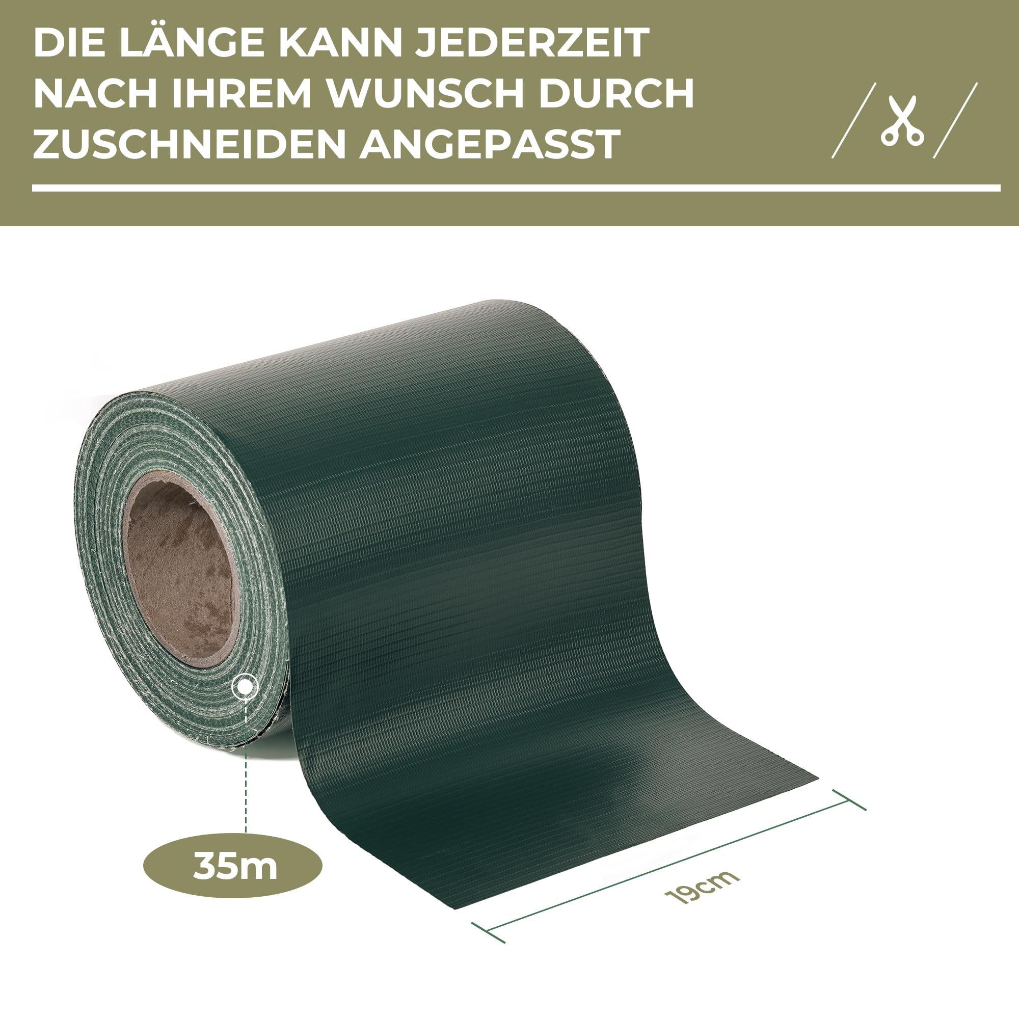 Zichaojia Sichtschutzstreifen Zaun 35 m x 19 cm inkl.20 Clips, PVC Sichtschutz Zaunfolie Sichtschutzstreifen Doppelstabmatten für Gartenzaun (35 m x 19 cm, Grün)