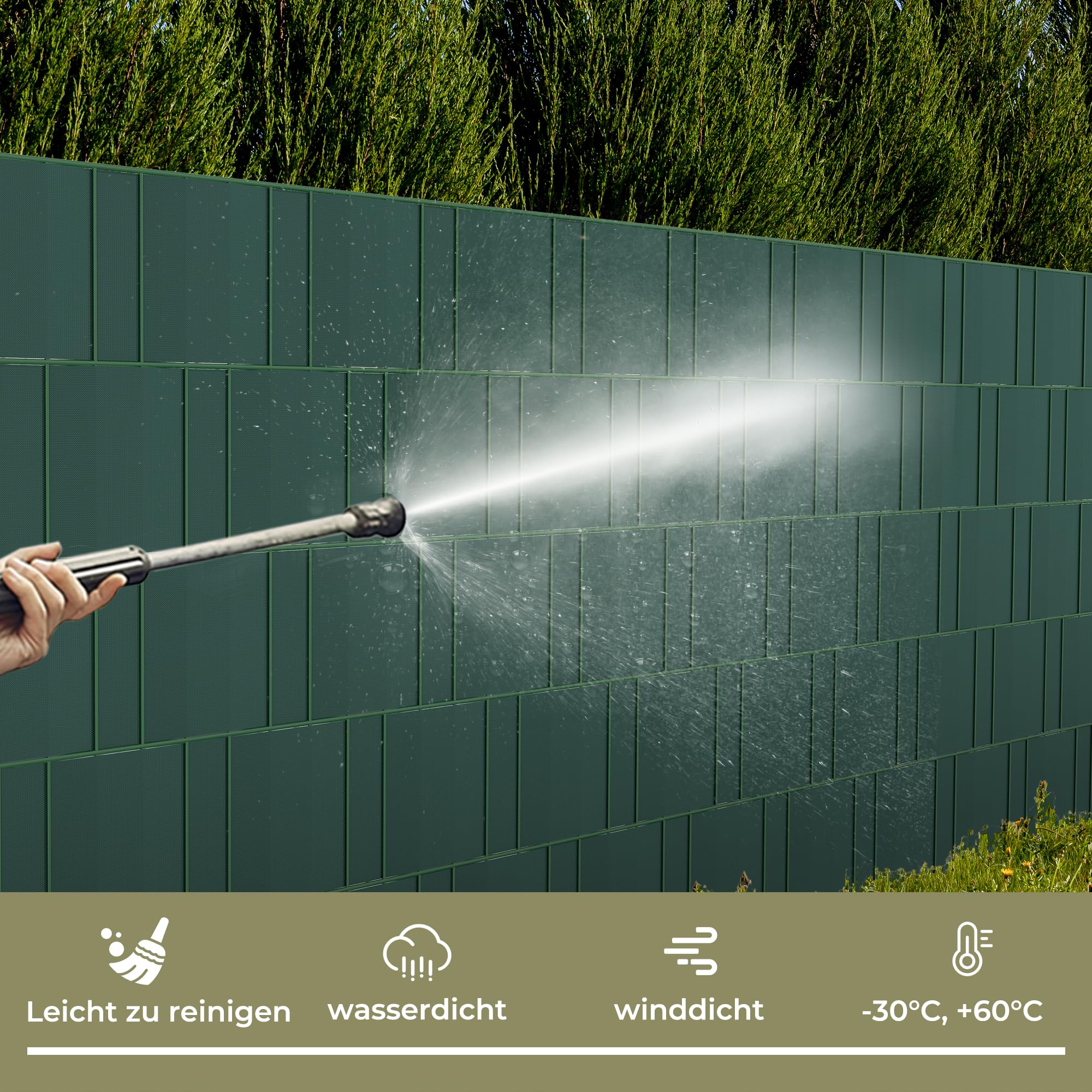 - 【Blickdicht und Wetterfest】Der Sichtschutz Zaun ist aus langlebigem und witterungsbeständigem PVC-Material, ist 100% recyclingfähig, bruchsicher, undurchsichtig. Da dieser Sichtschutzfolie wasserdicht ist, verhindert er, dass er schimmelt.