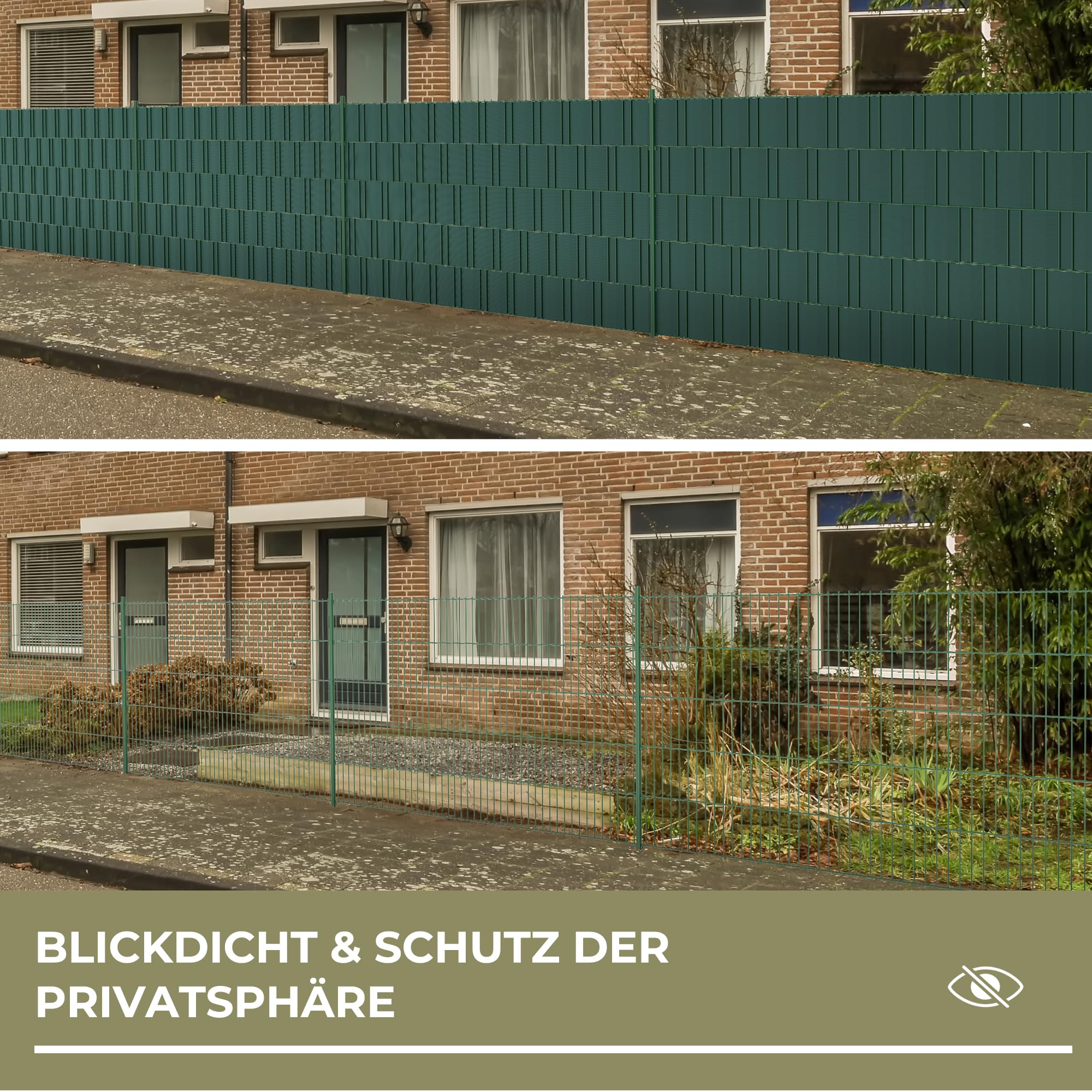 - 【Schutz der Privatsphäre】 Die PVC Doppelstabmattenzäune schützen Ihren Balkon, Terrasse oder Garten vor Wind und neugierigen Blicken. Sind die PVC Sichtschutzstreifen montiert, fixieren Sie die Enden noch mit den Befestigungsklammern und sorgen damit ganz unkompliziert für einen optisch runden und funktionalen Abschluss.