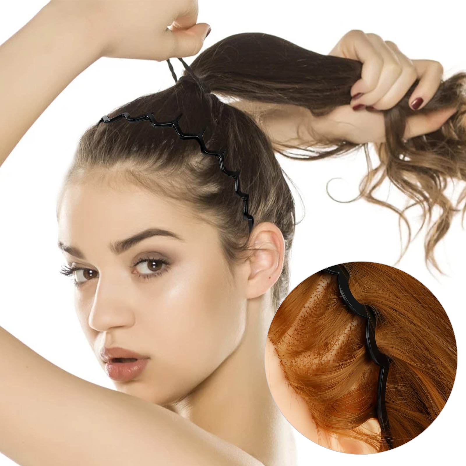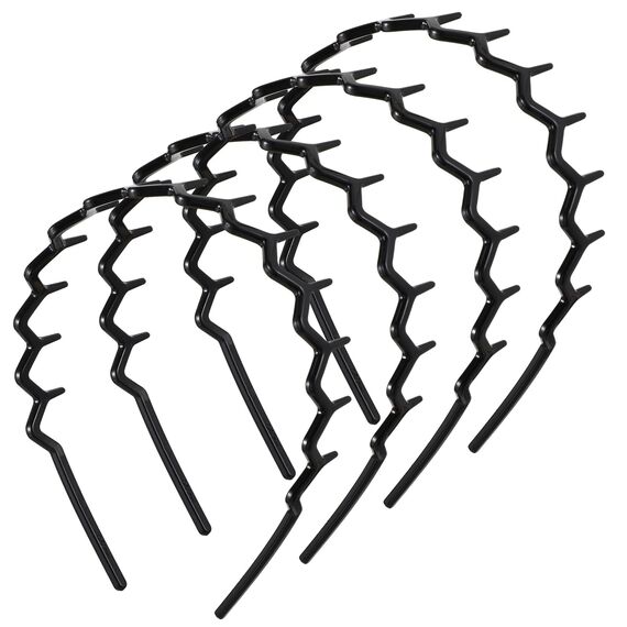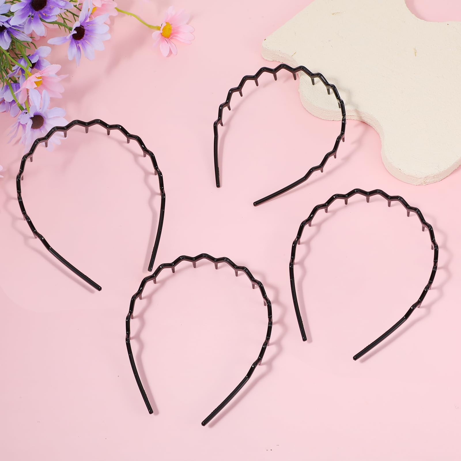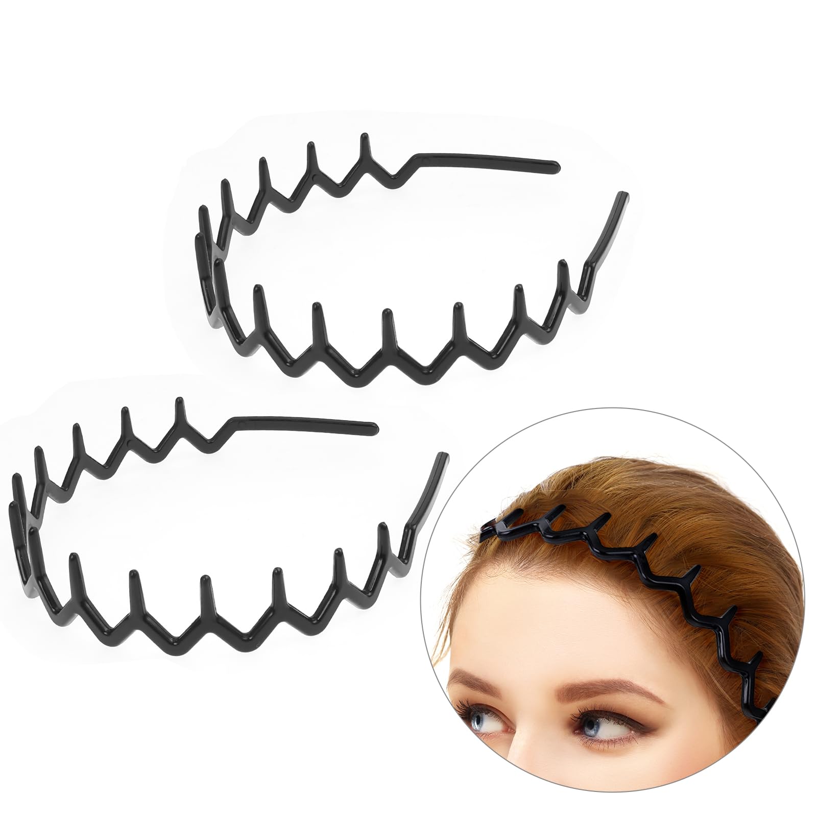 Zickzack Haarreif 4 Stück Haifischzahn Haarkamm Haarband Gewellte Kunststoff Stirnband Make Up Haarreif für Sport Fitness Tägliches für Damen und Mädchen (Vollschwarz)