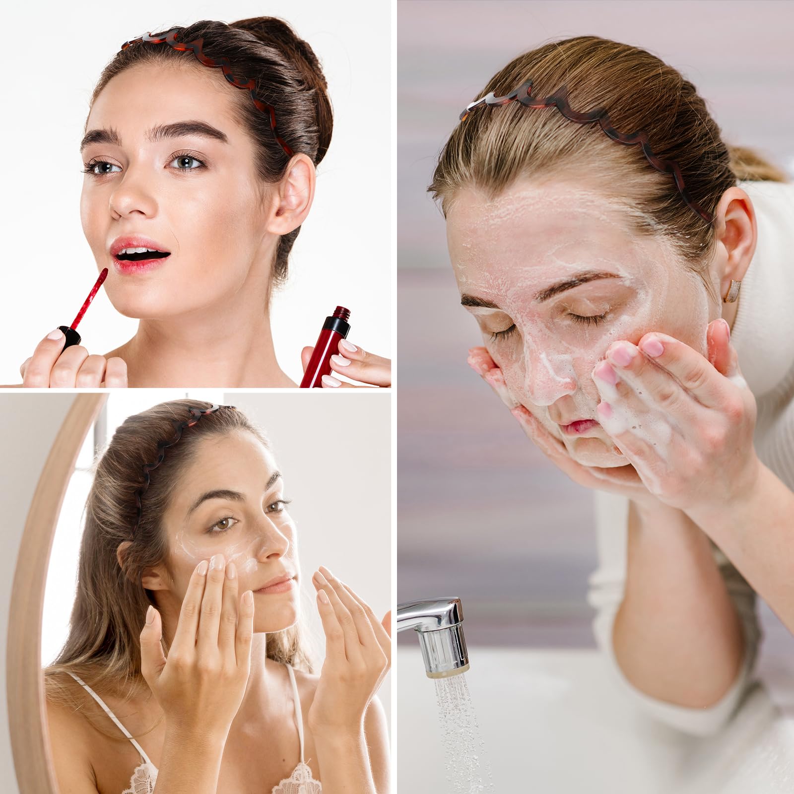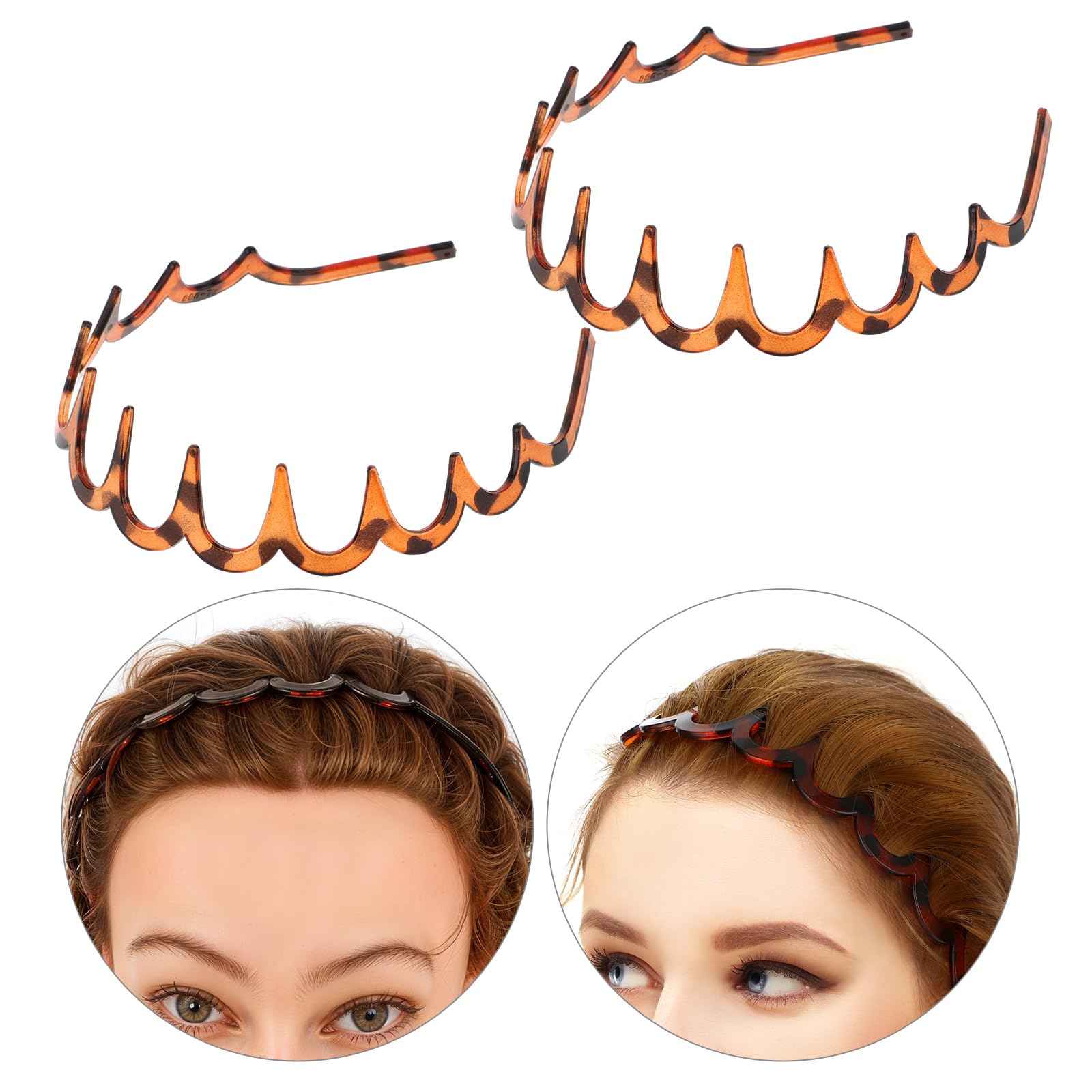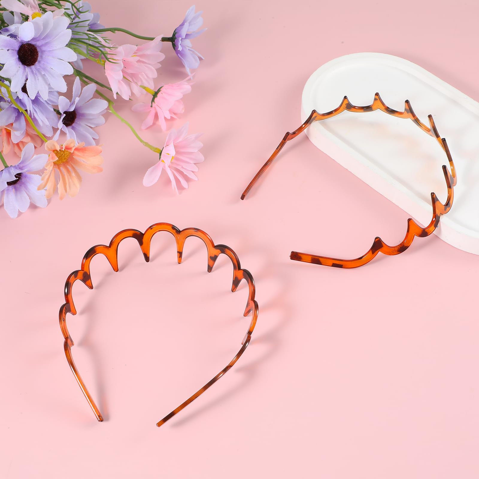 Zickzack Haarreif 4 Stück Haifischzahn Haarkamm Haarband Gewellte Kunststoff Stirnband Make Up Haarreif für Sport Fitness Tägliches für Damen Und Mädchen (Leopard)